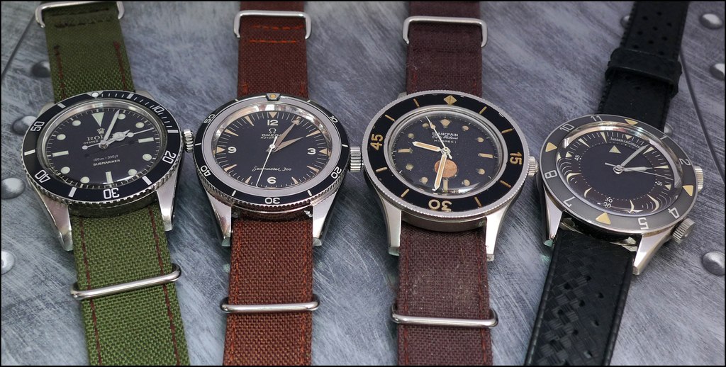 All the Diving watches were water resistant from 91 meters ( Blancpain Fifty Fathoms ) to 200 meters ( Rolex / Tudors Submariners, Omega Seamaster 300 Ref CK 2913 ) at the end of the Fifties, with the exception, nonetheless, of the Fifty Fathoms Aqualung 1 000 Feet, which was water resistant to 300 meters, as suggested by its name.