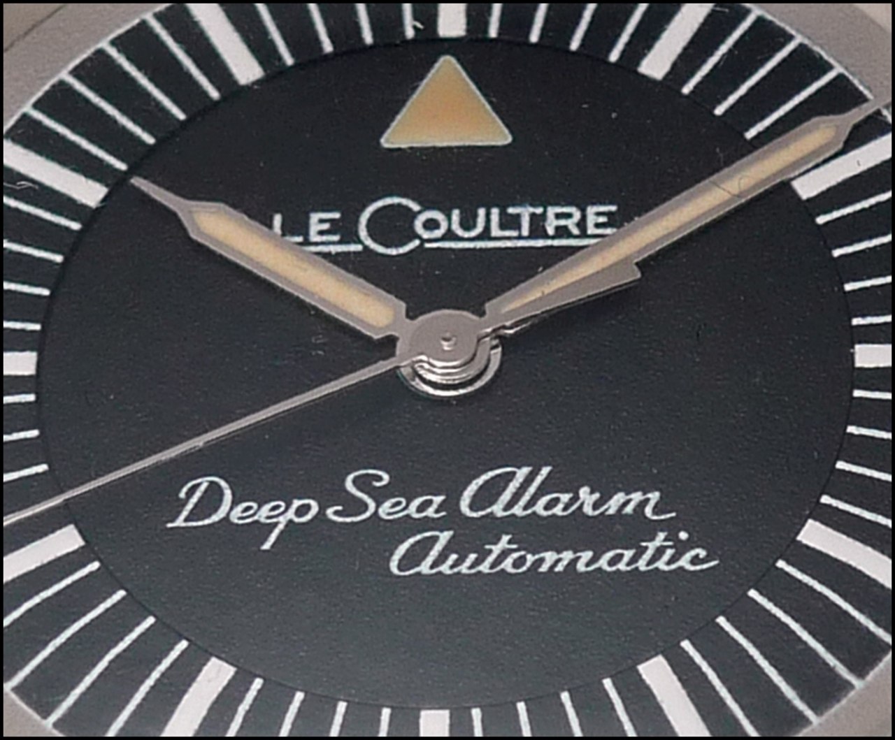 The same thin and long triangles, which are luminous, will be seen on the European Deep Sea Alarm, as well as the JLC Signature just under 12 o' clock: