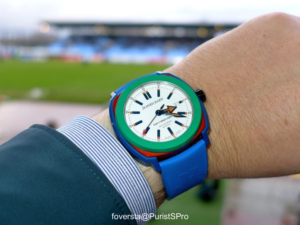 foversta shares an engaging account of attending a Top 14 Rugby game in Paris, courtesy of JeanRichard France. This post captures the atmosphere of the match between UBB and Racing Metro 92, offering a unique blend of sports enthusiasm and horological appreciation. The author also showcases his colorful JeanRichard Terrascope, highlighting its design and comfort.