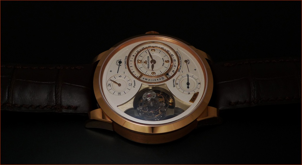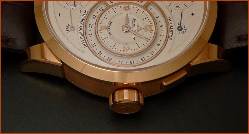 I was very impressed when i handled it ,the main feature for me is that JLC managed to keep it in a Duometre size case,making this watch wearable and elegant,what a great effort. Technically ,its magical,the same kind of magic that the Gyro produces,aestethically its a winner for me apart from a little bit too much text on the dial,I would have removed some. The second time zone is a nice idea,curious but nice. All in all I think the gyro1 is still the king of achivement,but given the chance to
