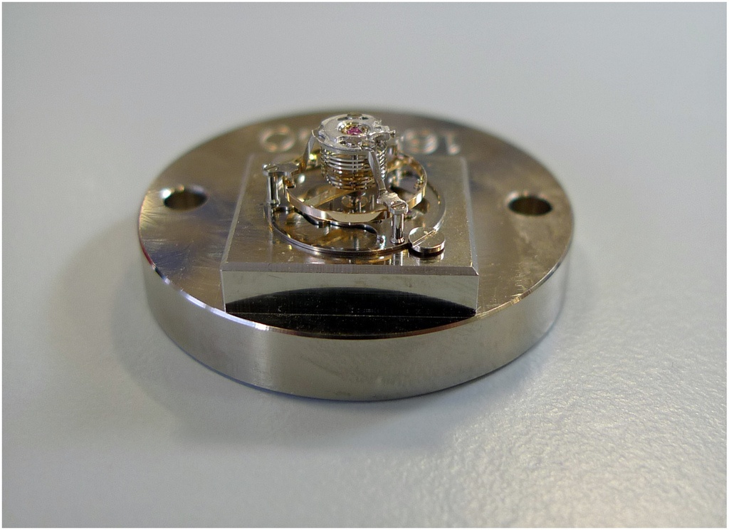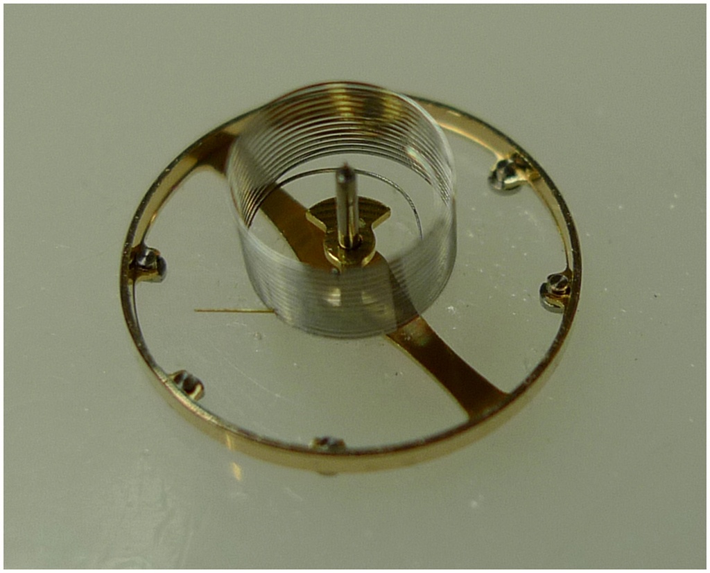 The spiral is attached to the axis of the balance wheel by a collet, while the stud fix it to the cage of the Tourbillon.