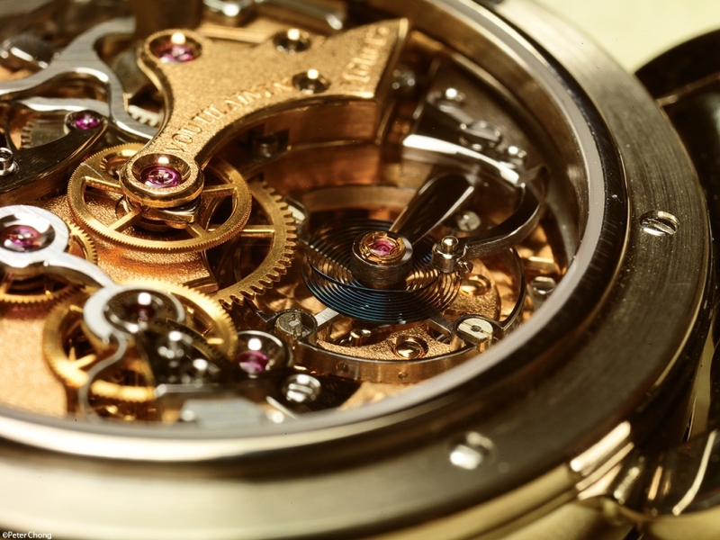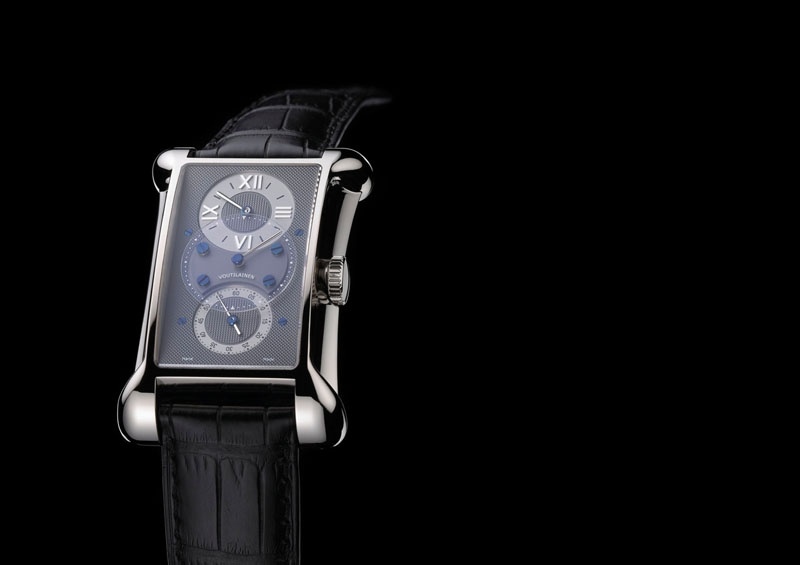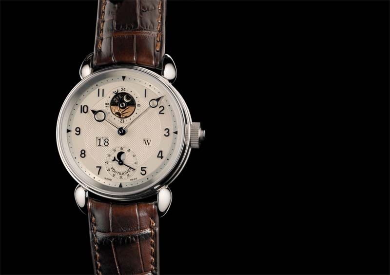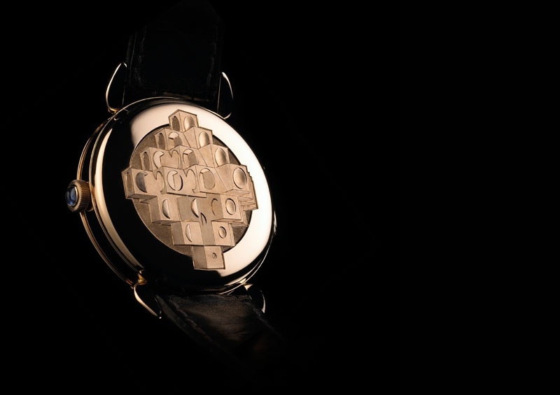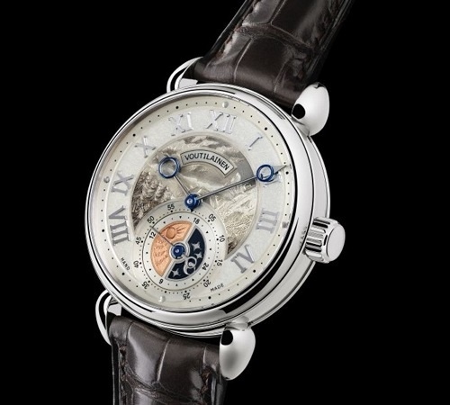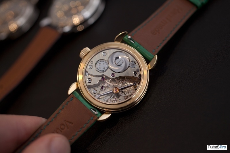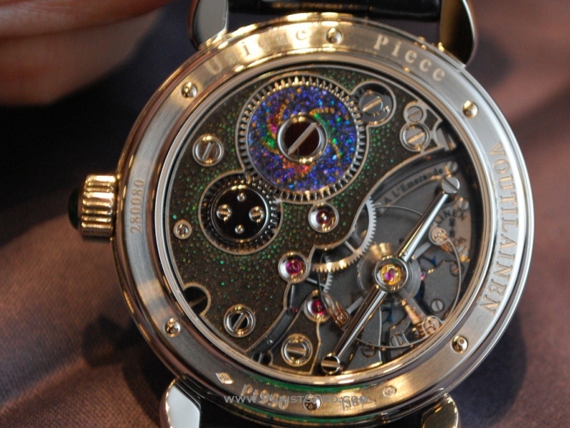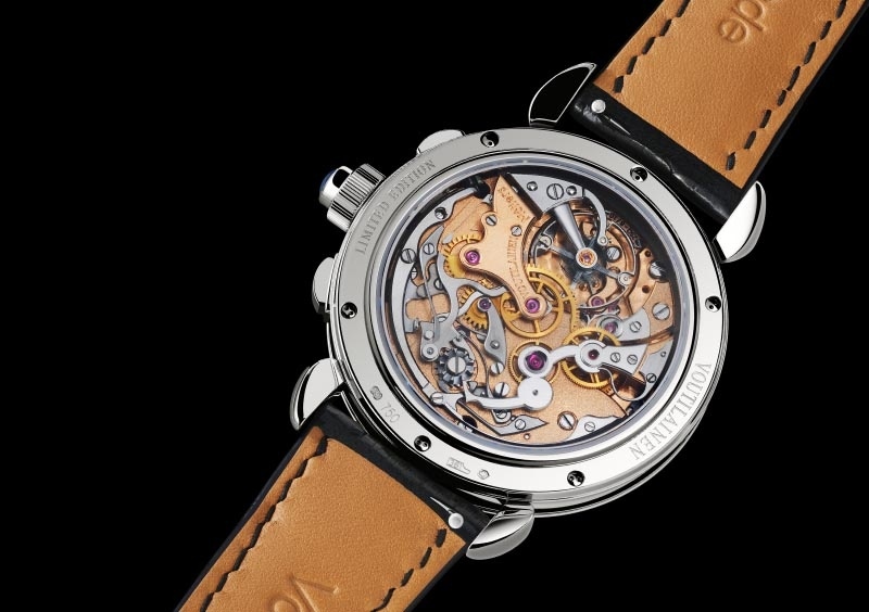This piece is made of a special hardened steel (Stavax) used for sound propagation purposes and has an open-worked dial which is unique in what Voutilainen's has already done.