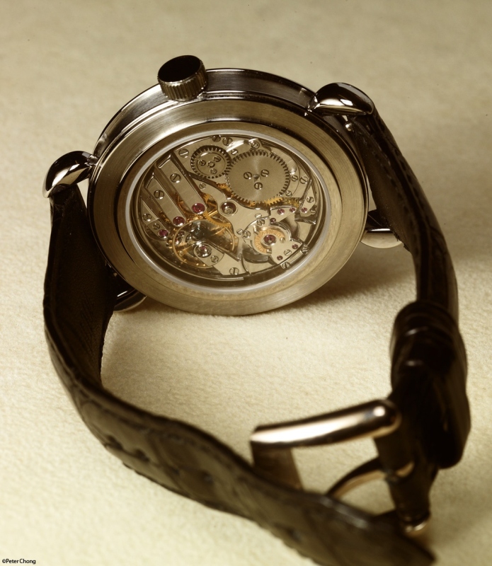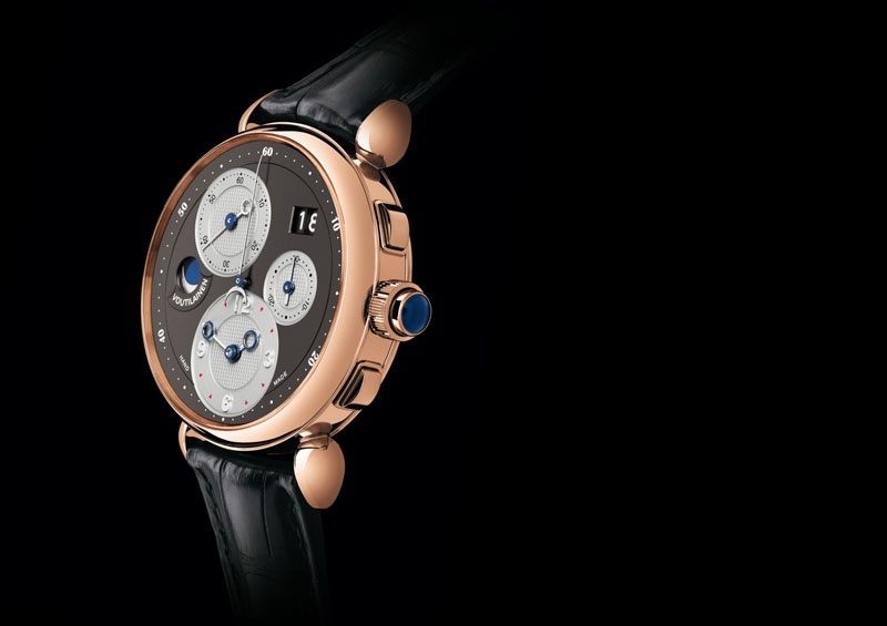 As its name says, it is based on an Observatoire movement. This unique piece has a patented selector mechanism activated by a pusher on the crown for the different functions.