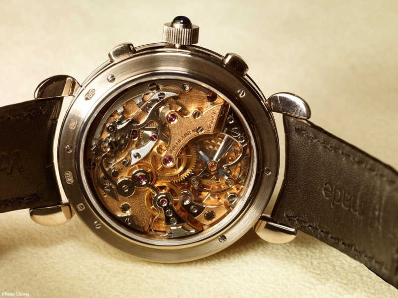 At the beginning of the millenary he decided to re think the minute repeater watch by making it "decimal" instead of the usual "quarter" indication (instead of marking each of the 3 intermediate quarters of an hour it plays each of the five 10 minutes periods). It was more logical as an hour is easier to divide by 10minutes parts instead of quarters and with a lower possible number of minutes it is easier to count too (9 instead of 14).