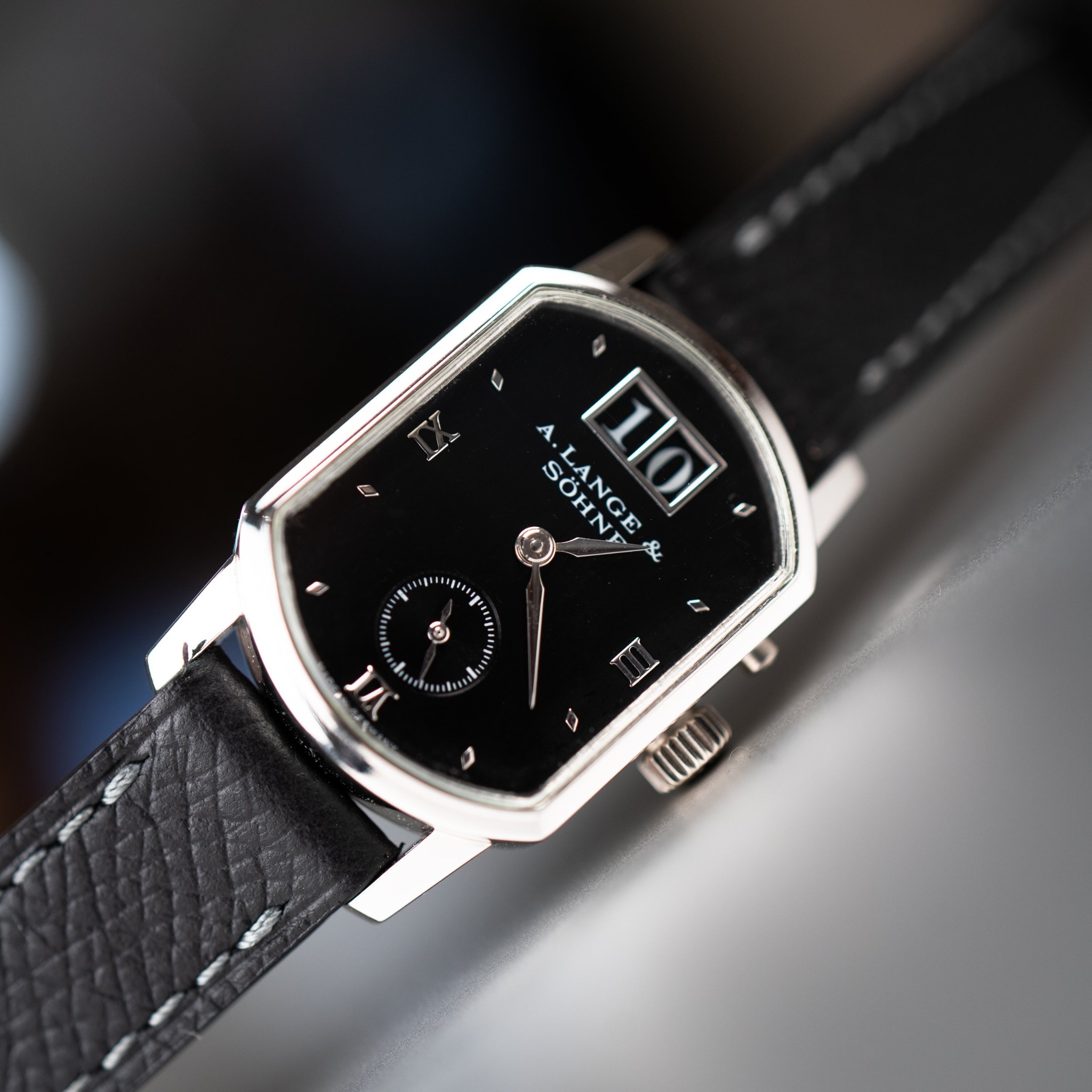 I think ALS could have developed/refined this model a bit more. 1) Increase the size by 25-33%. 2) Drop the Roman Numerals and use just diamond markers. 3) Increase the diameter of the seconds dial. 4) Do a guilloche dial. But hey, that’s my opinion. Keep in mind I have a closet full of fat ties and wide lapel blazers for the moment when fashion comes full circle. 😉