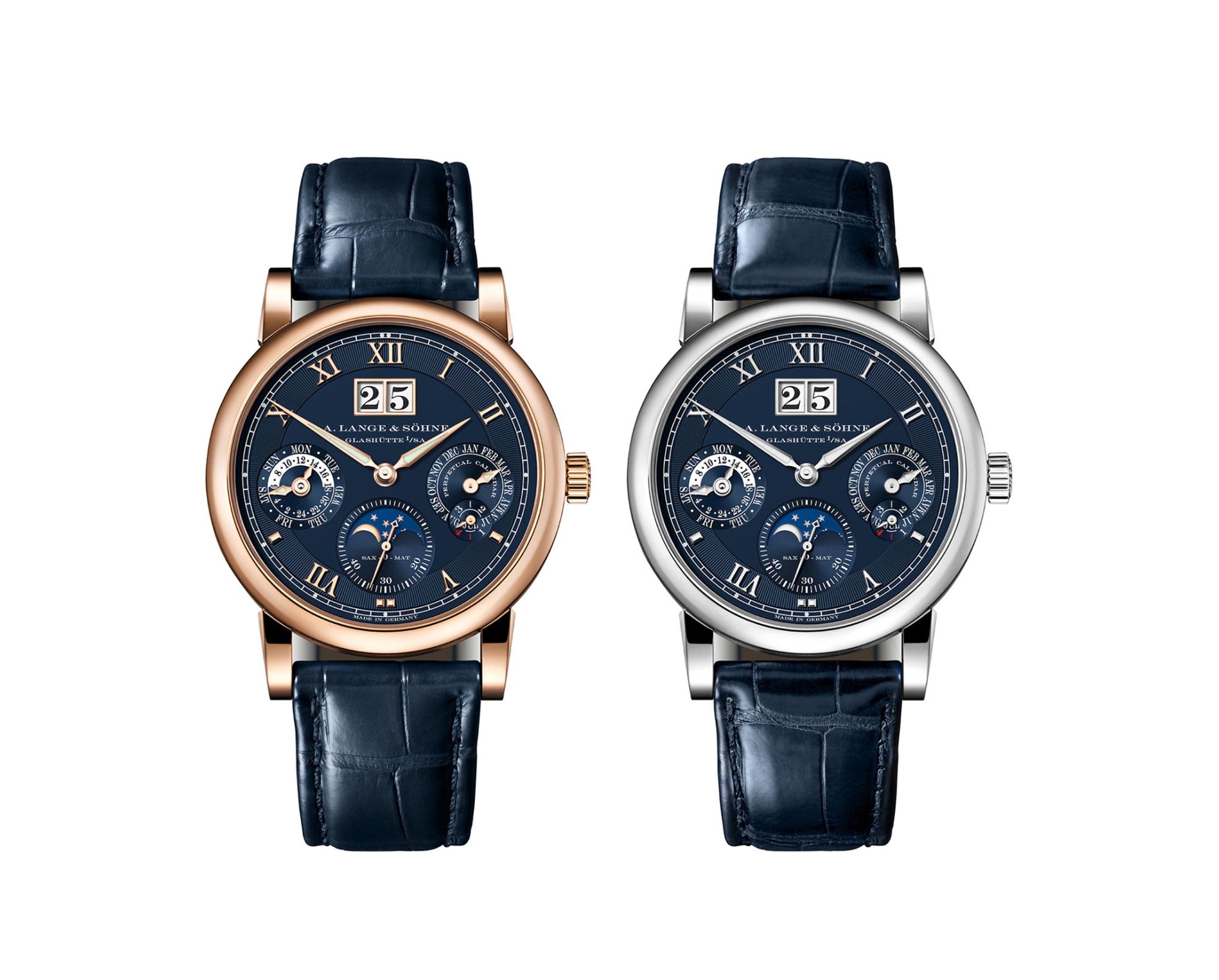 As with you, to my eye the blue dial just works better with the WG on this particular watch. However, I prefer the PG version on the new 34mm 1815 with the same blue dial. Go figure! Love the Langematik Perpetual and its movement. Never owned one - long to do so one day.