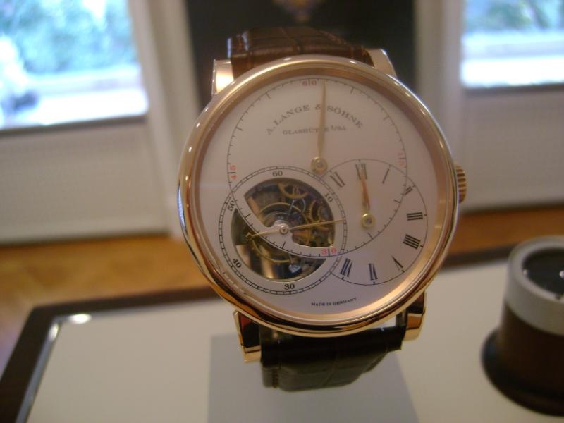 We took an elevator up a few floors (I believe there were 5 altogether) and exited near the top where we were greeted by Lange's new masterpiece this year, the PLM Tourbillion. I had my doubts when I first saw this piece in pictures but I have to say that this watch looks outstanding in person!