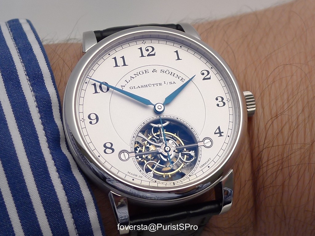 QUESTION: Can you say more about the tourbillon on the 1815 Tourbillon being "too obvious"? Do you mean that the tourbillon aperture is too large? COMMENT: Your photo of the new 1815 next to your old 1815 was VERY helpful! I'm sure I'm not the only longtime Lange enthusiast who had that very same curiosity about what the original 1815 looked like next to the new "downsized" (after being "supersized") 1815. It's interesting that the "6" on the new 1815 is completely decapitated, whereas the subse