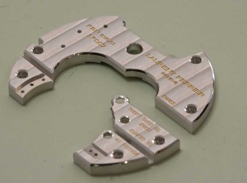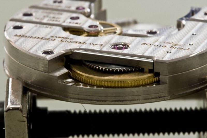 Laurent Ferrier had a vision of the watch he wanted and he teamed with other Patek veterans to create the movement. In the summer of 2008 he contacted “La Fabrique du Temps” created by Michel Navas and Enrico Barbasini (the NB of BNB fame who had left the latter to concentrate on a more traditional approach to watchmaking) one of the better known movement developers in the industry. Incidentally Laurent’s son, Christian, was also working at La Fabrique du Temps and as a prototypist/developer worked full time with his father in developing this movement. Credit is actually given where due as the calibre is named FNB 916.01, FNB as in Ferrrier, Navas, and Barbasini. The 916 is because Laurent Ferrier is born on a 19th and his son Christian on a 16th!
