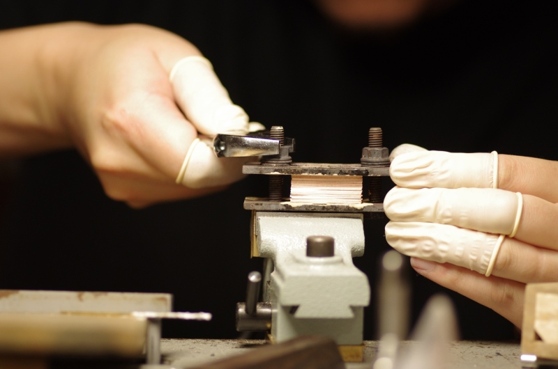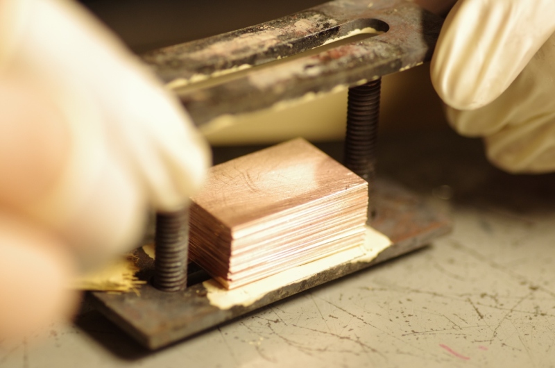 Here are some scans showing all of the painstaking steps that go into creating the Mokume-Gane dial using traditional methods: