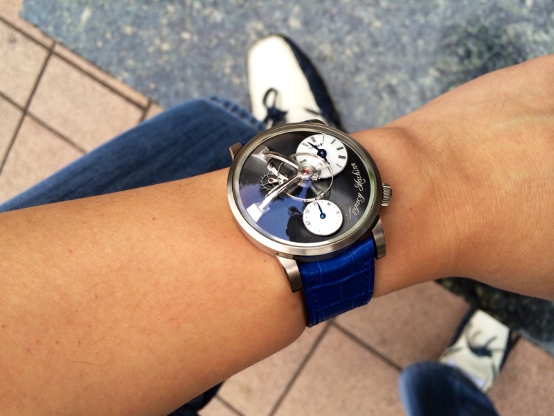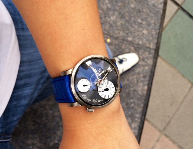 Jrwong23 (aka watchthebin) showcases his MB&F Legacy Machine 101 with a new, vibrant blue strap, highlighting how this 'funky' addition injects a playful spirit into the classically designed timepiece. His post, accompanied by several wristshots, demonstrates the transformative power of strap changes in personalizing a high-horology watch and reflecting the owner's unique style.