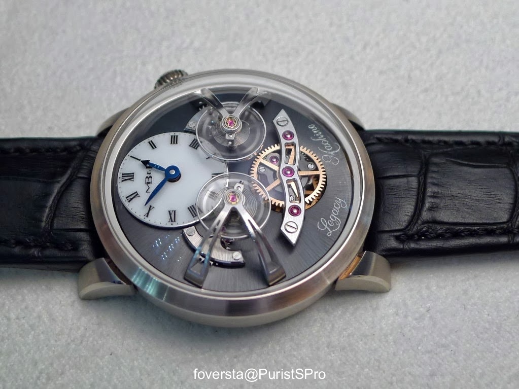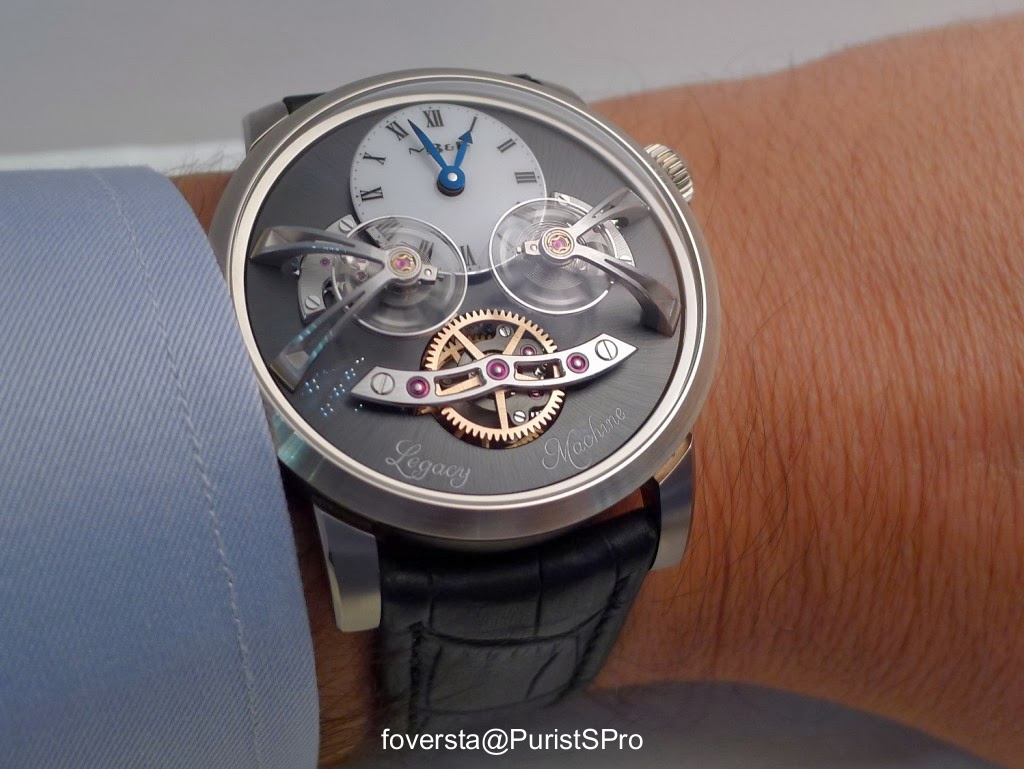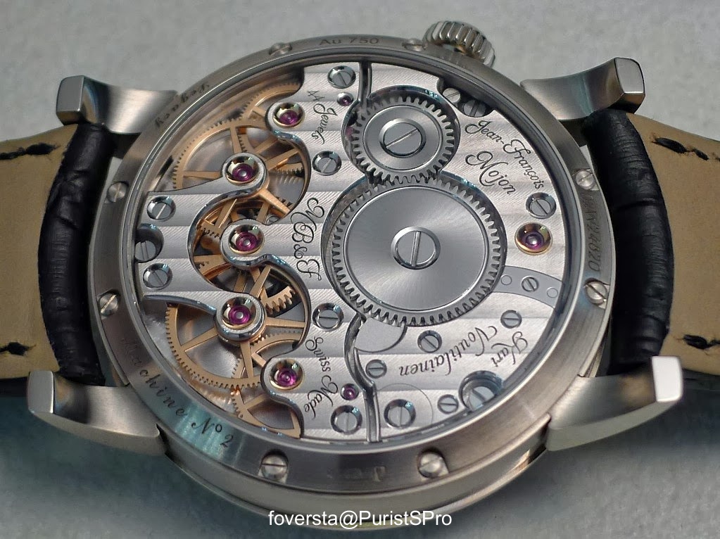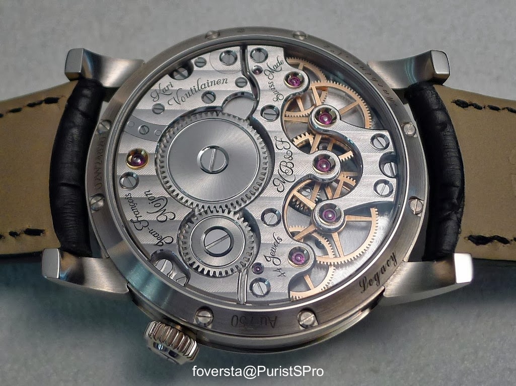 The movement of the LM1 is already considered one of the finest contemporary handwind movements. I must say that the pedigree of fairies who bent over its cradle is awesome. I still have the image of Jean-François Mojon who creates movements with innovative architectures and very modern presentations (eg the movement of the Harry Winston Z6) while Kari Voutilainen embodies the absolute classicism of watchmaking. This is why their work together, a kind of marriage of fire with ice was highly anticipated. The movement presented two years ago was up to the expectations and immediately seduced by its size, its architecture, the shapes of the bridges and the exceptional finishings. Its low frequency (2.5 Hz) was also considered as being consistent with the spirit of the Legacy Machine collection.