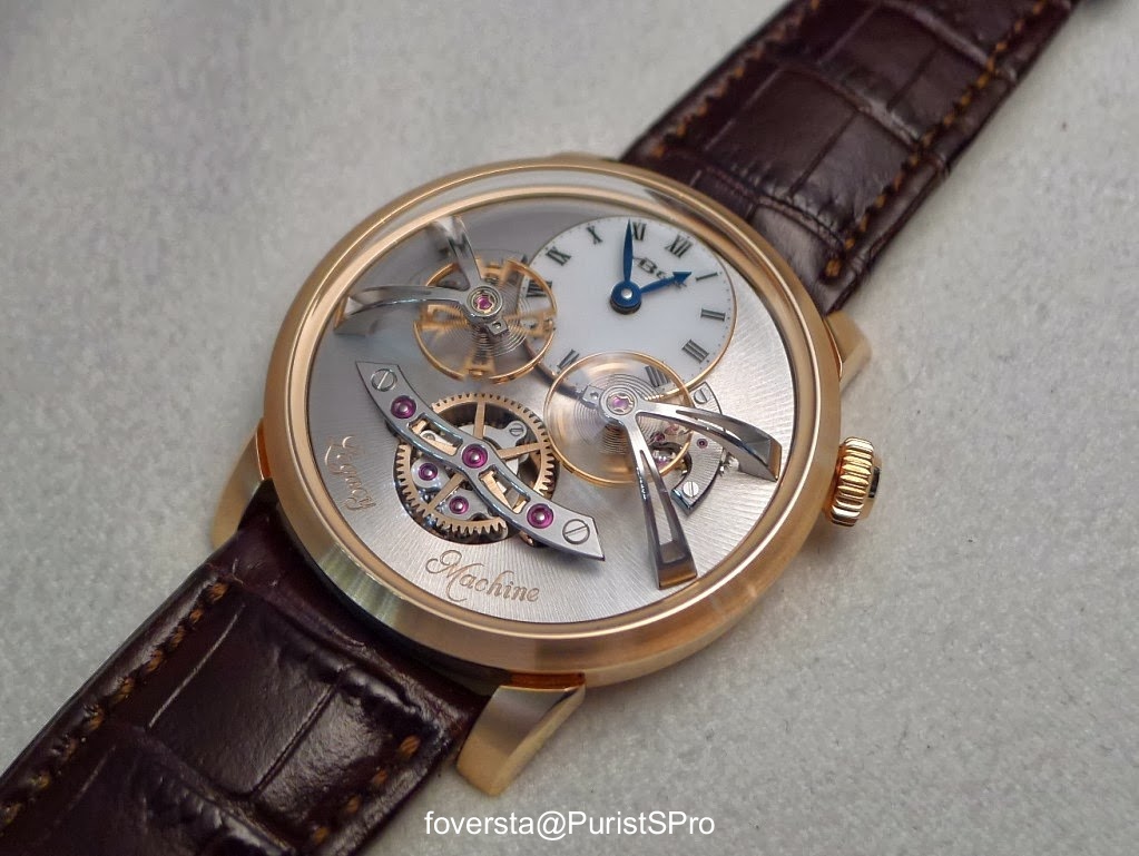 The Legacy Machine 1, which was unveiled two years ago, is a very important watch for Max Büsser. Indeed, it not only marks the beginning of a new collection but it explores territories and embodies ideas that are not so clearly addressed with the Horological Machines. If these latter are a representation of modernity or of what could be the future of watchmaking being daring creators of trends, the Legacy Machine 1 operates in a different register. Rather than imagining the next steps of watchmaking from our vision of the contemporary world, it adopts the same forward-looking approach but by placing its starting point a century earlier. This is why it combines traditional classical dimension, with a singular character as evidenced by the impressive suspended balance wheel, visible dial side, the three-dimensional power reserve indicator or the sub-dials, which are a glmpse of the displays of Horological Machines. The beauty of the movement and its flawless presentation pay homage to the pocket watches of the beginning of the previous century renowned for their ability to combine aesthetics and performance. The irresistible charm of the Legacy Machine 1 has all these ingredients, the combination ends up creating a Jules Verne atmosphere.