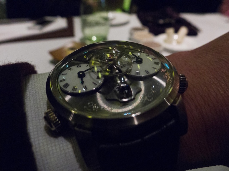 .... 'twas a pleasure to spend the evening with Max and, for me as a fan of Stepan Sarpaneva, to see their collaboration. I want to extend my thanks to Max for sharing his Machines and thoughts about life, watches and well the Universe really, to Cara & Co for great food (I had the kangaroo too) and service, and a HUGE thanks to sidneyc, without whom the evening would not have been possible, as it was he who organised and hosted the evening. Thank you for inviting me along, Sidney. Next time Max