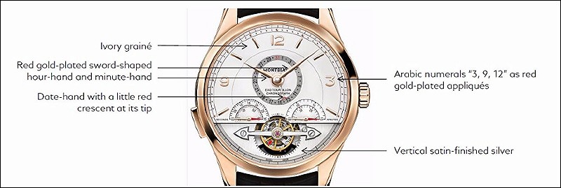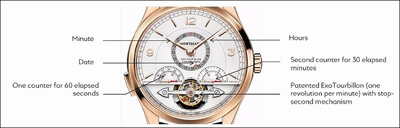 As explained by the watchmakers at Montblanc Villeret, when compared to a traditional tourbillon construction, the ExoTourbillon is able to save energy of approximately 30% and at the same time increase the precision. In addition, the balance can swing freely from the inertia of the tourbillon cage, which increases its isochronism and improves the precision of the mechanism. The above are possible because the weight of the tourbillon is disconnected from the balance wheel and the tourbillon cage used is lighter and smaller, which saves energy.