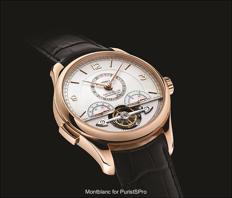 Now, over at the Villeret manufacture of Montblanc, another complication was developed and patented, i.e. the ExoTourbillon. This movement was first deployed in the calibre MB M16.60, which powers the Montblanc Villeret ExoTourbillon Chronograph (see below).
