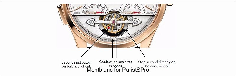 Another interesting feature of this new movement is the stop second mechanism. The stop second mechanism is constructed directly on the balance wheel. There is a graduation scale for the seconds around the ExoTourbillon with a red arrow to indicate the running seconds as well as to set the exact time when the balance wheel stops (by the stop second mechanism).