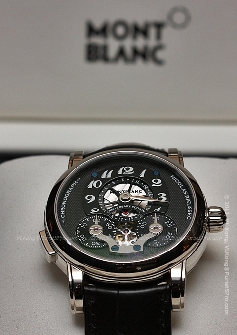 I would have hard time deciding which one I would take, between the platinum, for its understated but very elegant look, and the stronger white gold black dial combination. I love a lot the way they included the date in the " dial landscape "... It doesn't ruin the dial, as it too often is the case. I had the pleasure to see this Chrono in the flesh, at IGOTT II, and it was one of these nice souvenirs, a revelation. The Chic du Chic? No need to mention Montblanc on the dial: This would be a very