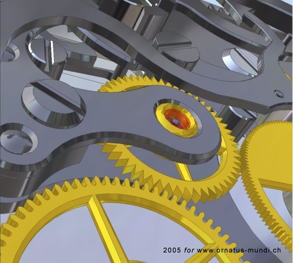 GO- decentralized seconds display, vertical coupling balance wheel stopped