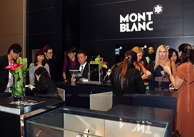 Guests checking out the Montblanc wathces, and staff was present to explain the details and answering queries ...