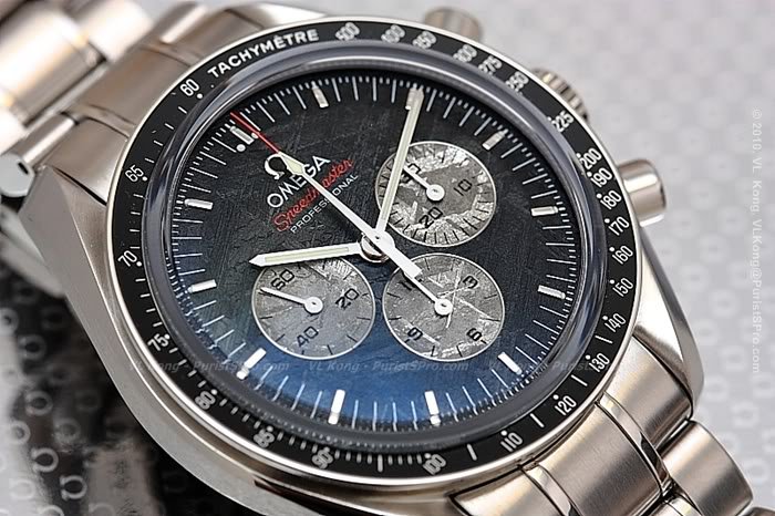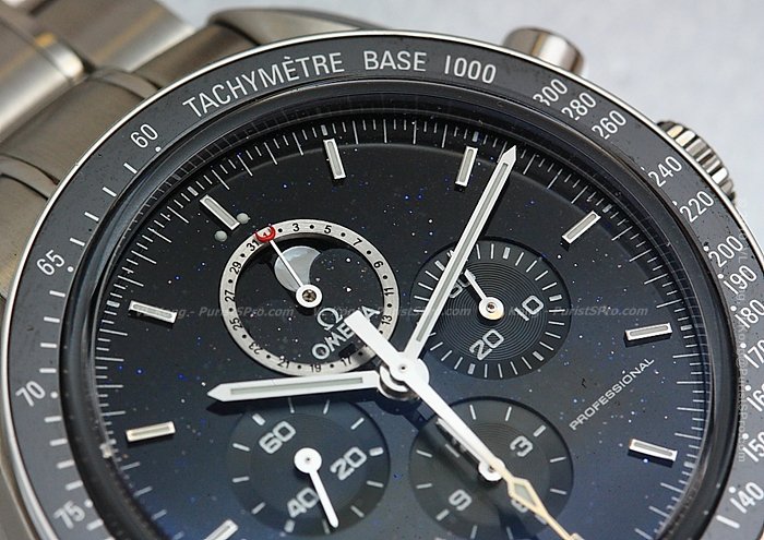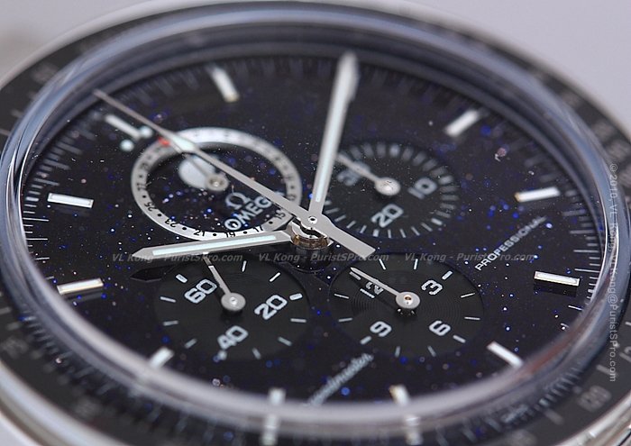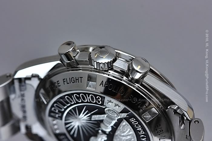 They are some great up close shots of these watches. The Speedmaster Pro moon phase looks really amazing in macro like that. I had not seen the bracelet and clasp in detail before. You can see the "new" screwed link system in your shots. The bracelet clasp has added feature to it as well. Interestingly the Apollo Soyuz in your shots does not appear to have the new style bracelet which in the press kits (IIRC) it is advertised as having. I recall reading a post somewhere from someone who bought o
