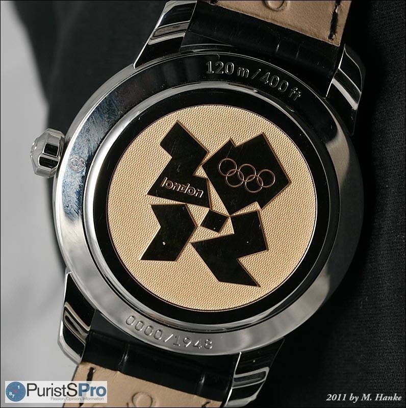 The solid caseback displays the logo of the 2012 Olympic games in gold.