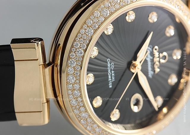 - With transferred “Ladymatic” under and “Co-Axial Chronometer” at 6H