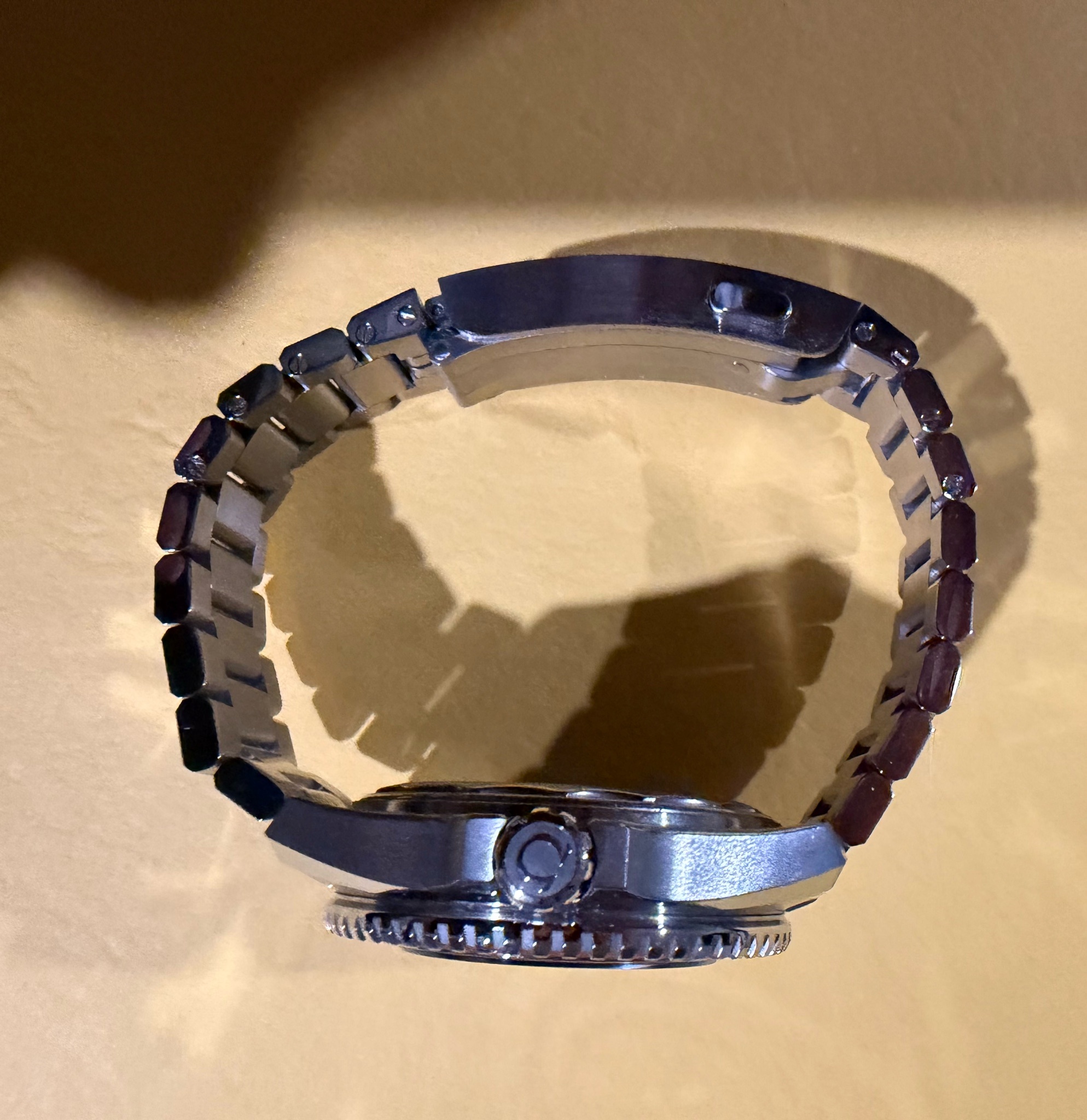 As an owner of the 2500, PO Chrono and the PO GMT I like SHOM like angularity of the case. I was a bit put off by the bracelet when I tried it on. I really wished that they had addressed the valve issue in the way they did with PLOPROF or Rolex did. I never minded the extra crown. All of that being said my ideal iteration would either be a ceramic version with a rubber strap, the “Bond” mesh bracelet with steel and I would like to see a gradient fume style dial…something really distinctive so I