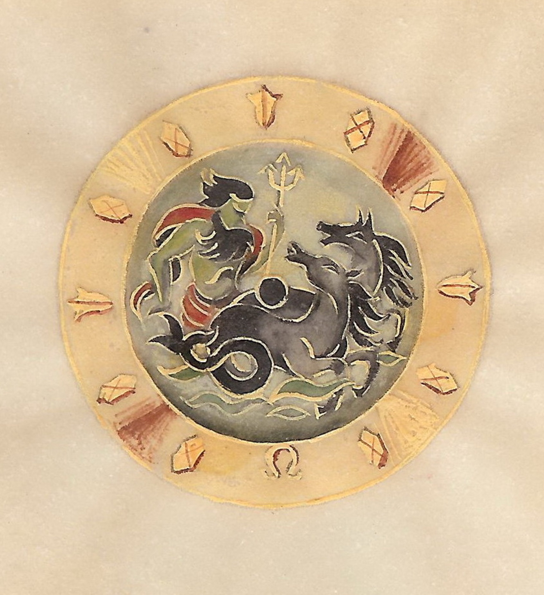 Neptune riding his chariot.