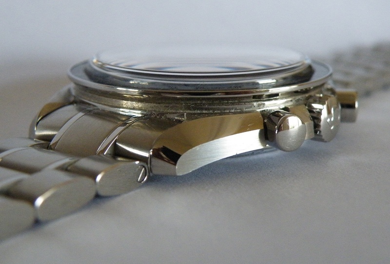 The glass was not hesalite, but sapphiree, this irked many a collector too, but for me was a feature I could happily live with especially in combination with the 100m water resistance. But again for Purists..this was too much too bare.