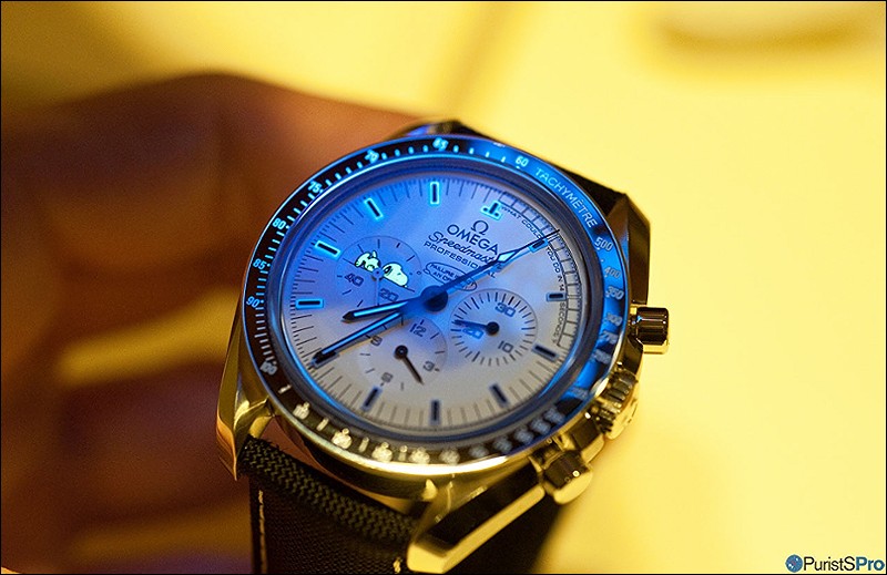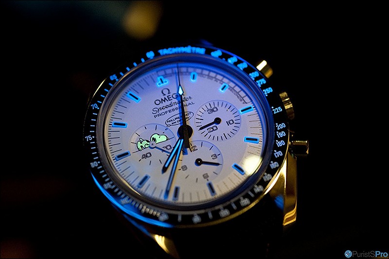 The Speedmaster Apollo 13 Silver Snoopy Award has something of a second life, a different personality by night. Its best appreciated and enjoyed with a bit of