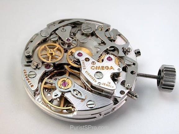 Omega Calibre 1861 manual-winding chronograph used in the original โMoonwatchโ, and its coaxial-escpament powered modern cousins). This is a legendary. space-tested movement (you might want to read more about it in Jack Forster's excellent in-depth review