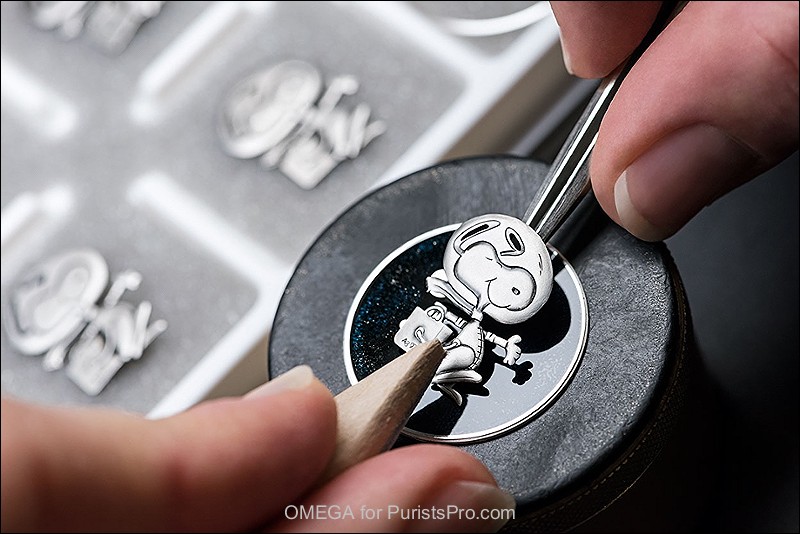 Of these 1970 piece not two are identical thanks to the hand work involved in creating the case back. Omega was kind enough to share with us some images from engraving, enamelling and final setting of the Snoopy figure: