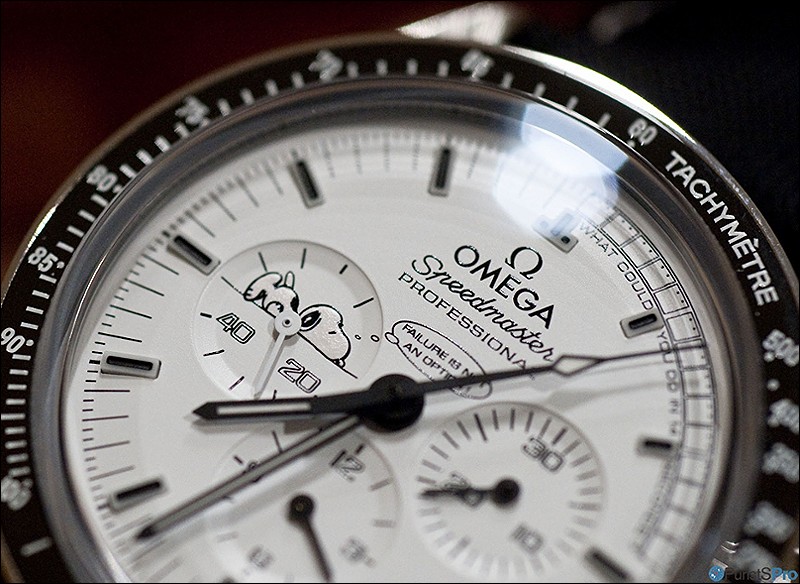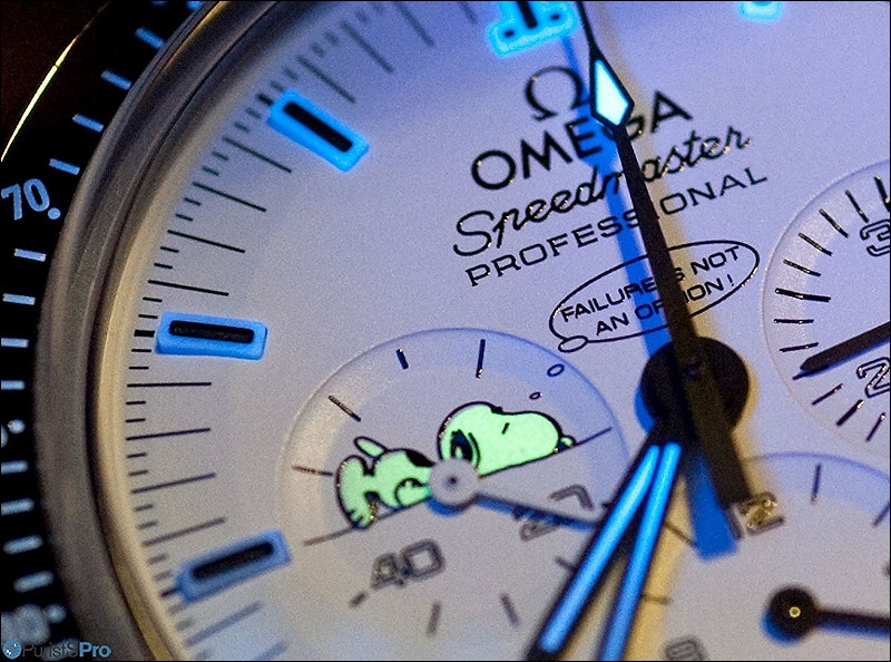 There are three distinct characteristics of the Apollo 13 edition of the Speedmaster: (i) 14 small squares between zero and 14 seconds reminding on the first 14 seconds as the critical time frame the crew had to fire the space-module's engines; (ii) of, course, Snoopy in one of his most typical retreats into a fanciful world in order to survive the real one, (iii) dreaming up the words, "Failure is not an option," referencing the quote delivered by actor Ed Harris, as flight director Gene Kranz, in the 1995 film "Apollo 13."