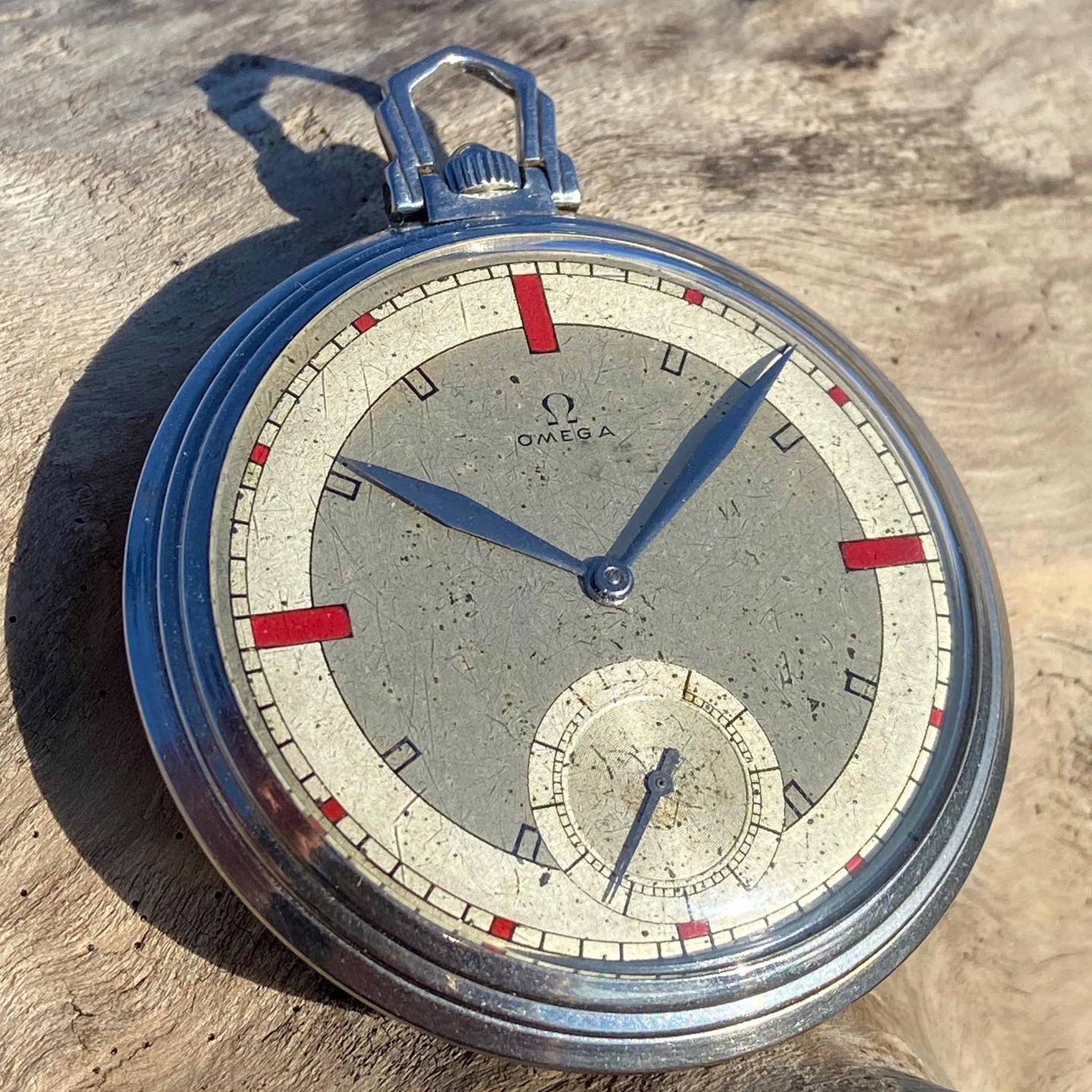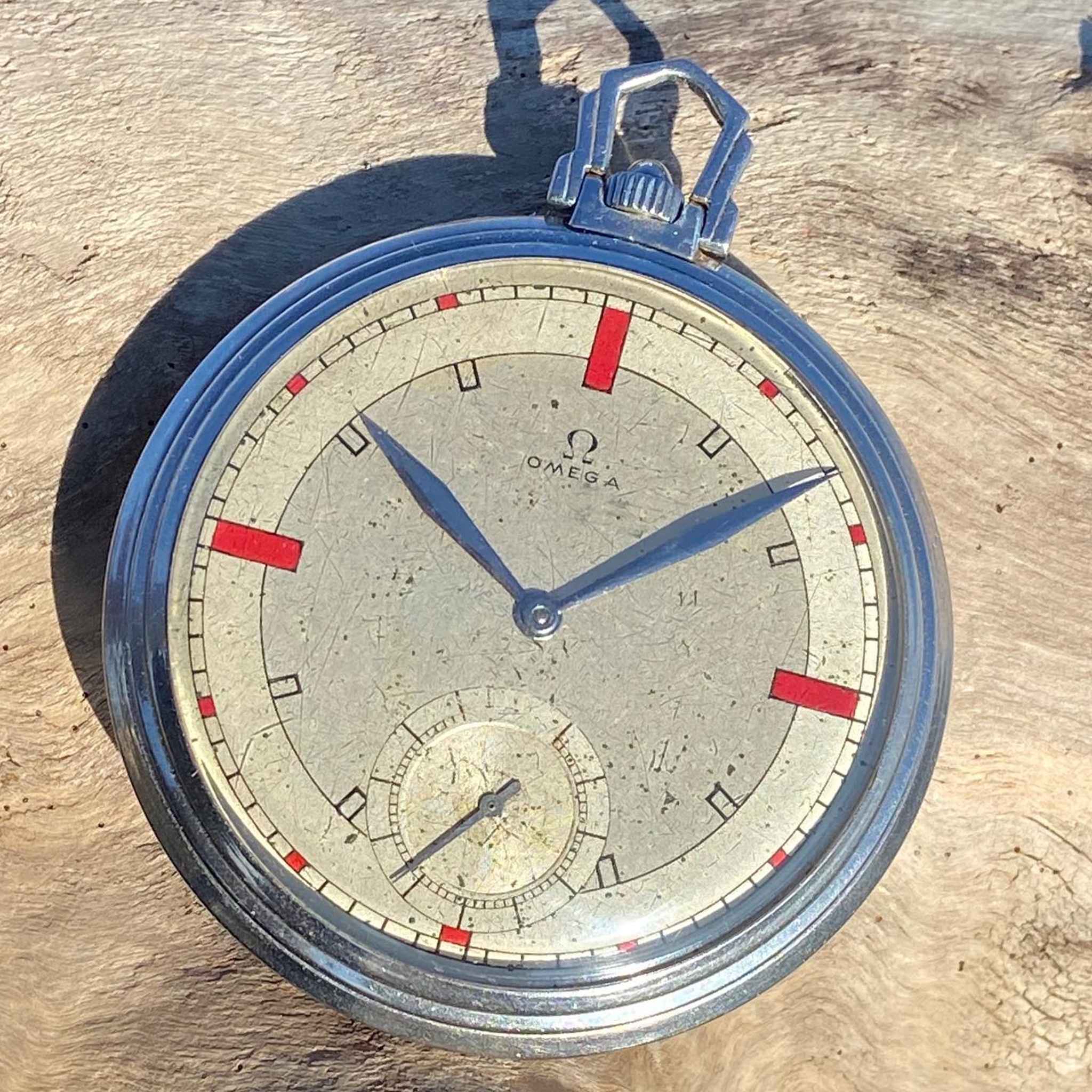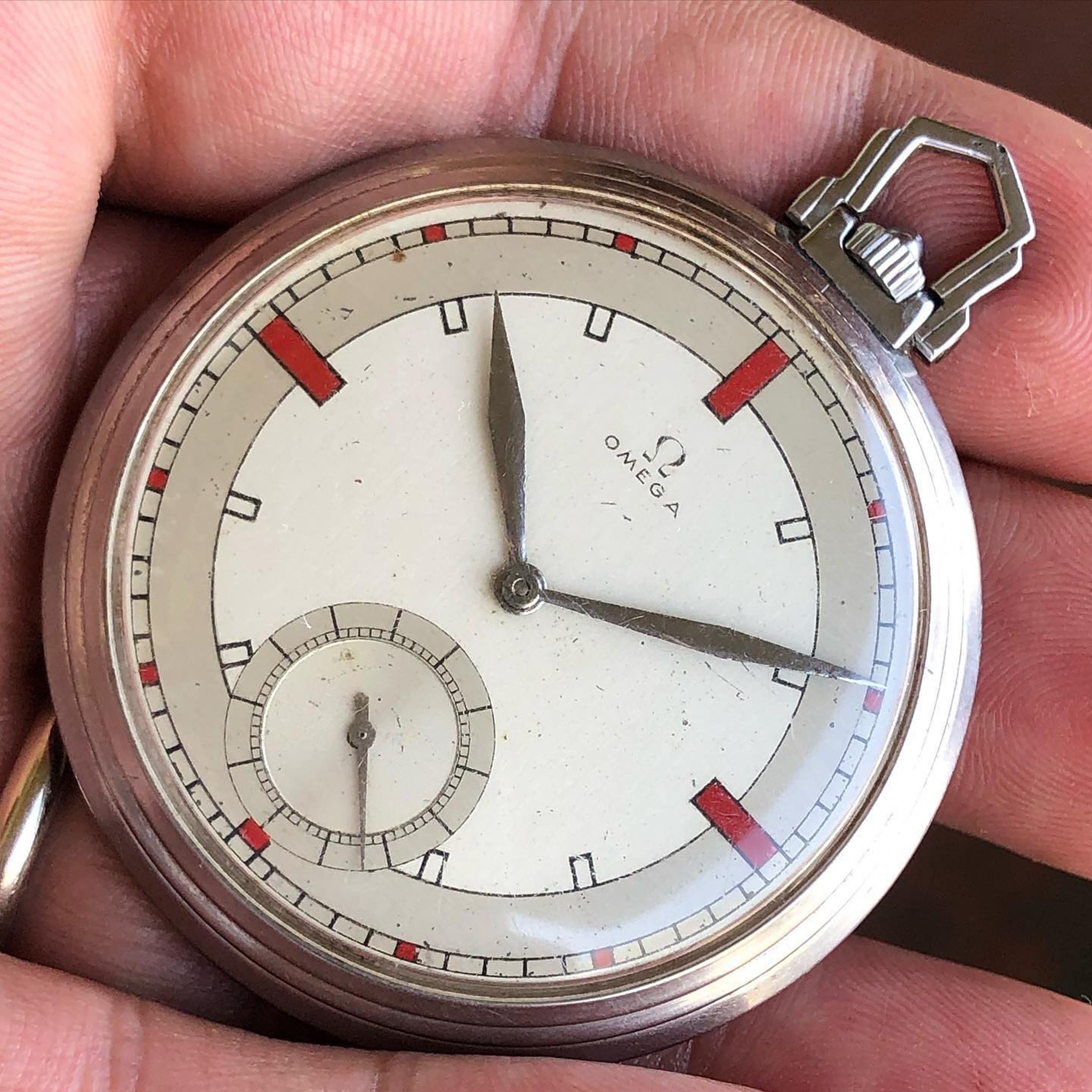 During the 1930s, Omega has made some beautiful wristwatches and pocket watches with striking red painted indexes at 3, 6, 9 & 12.