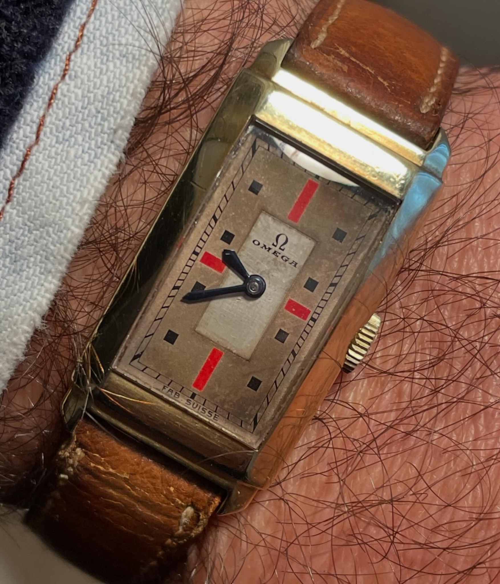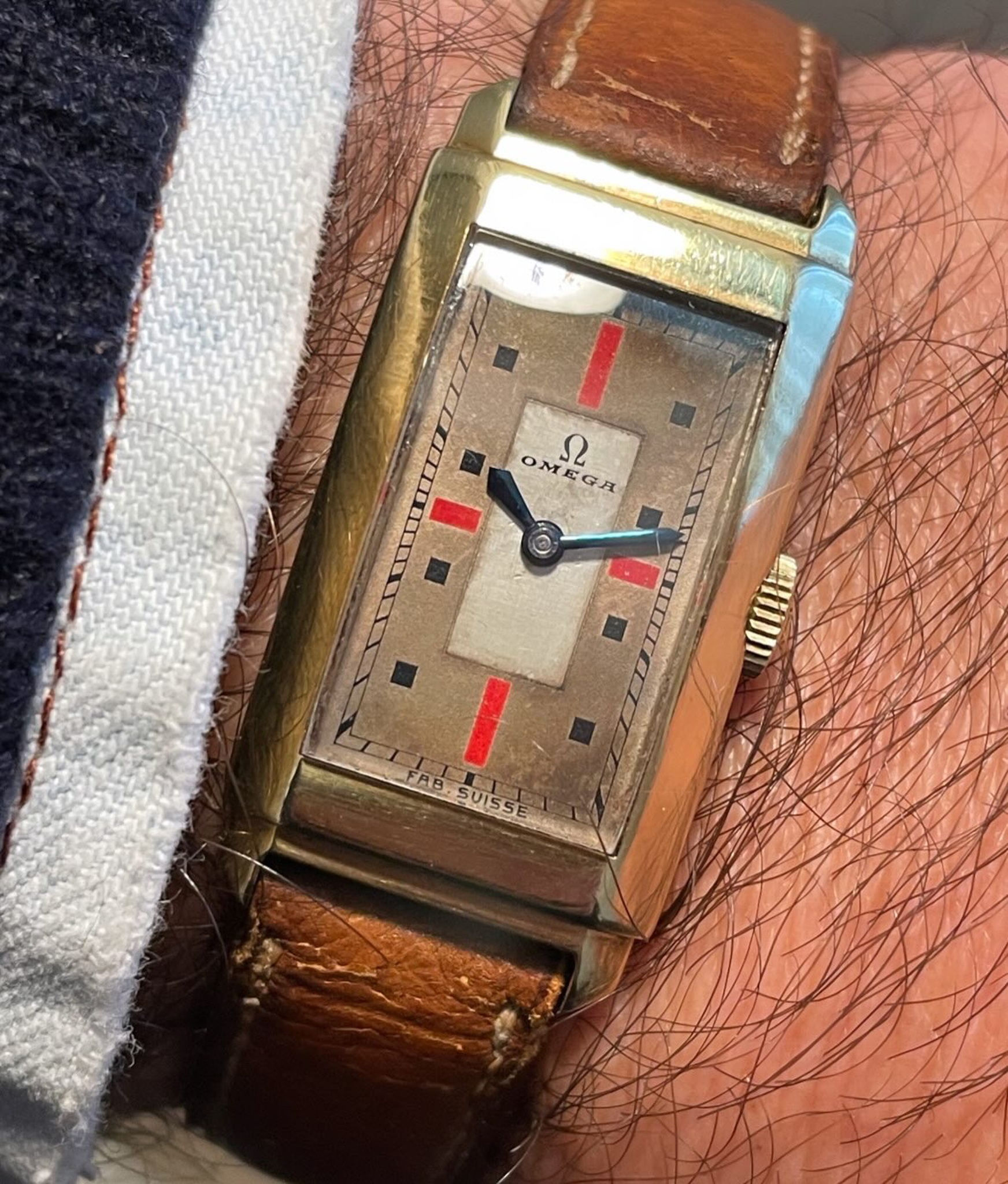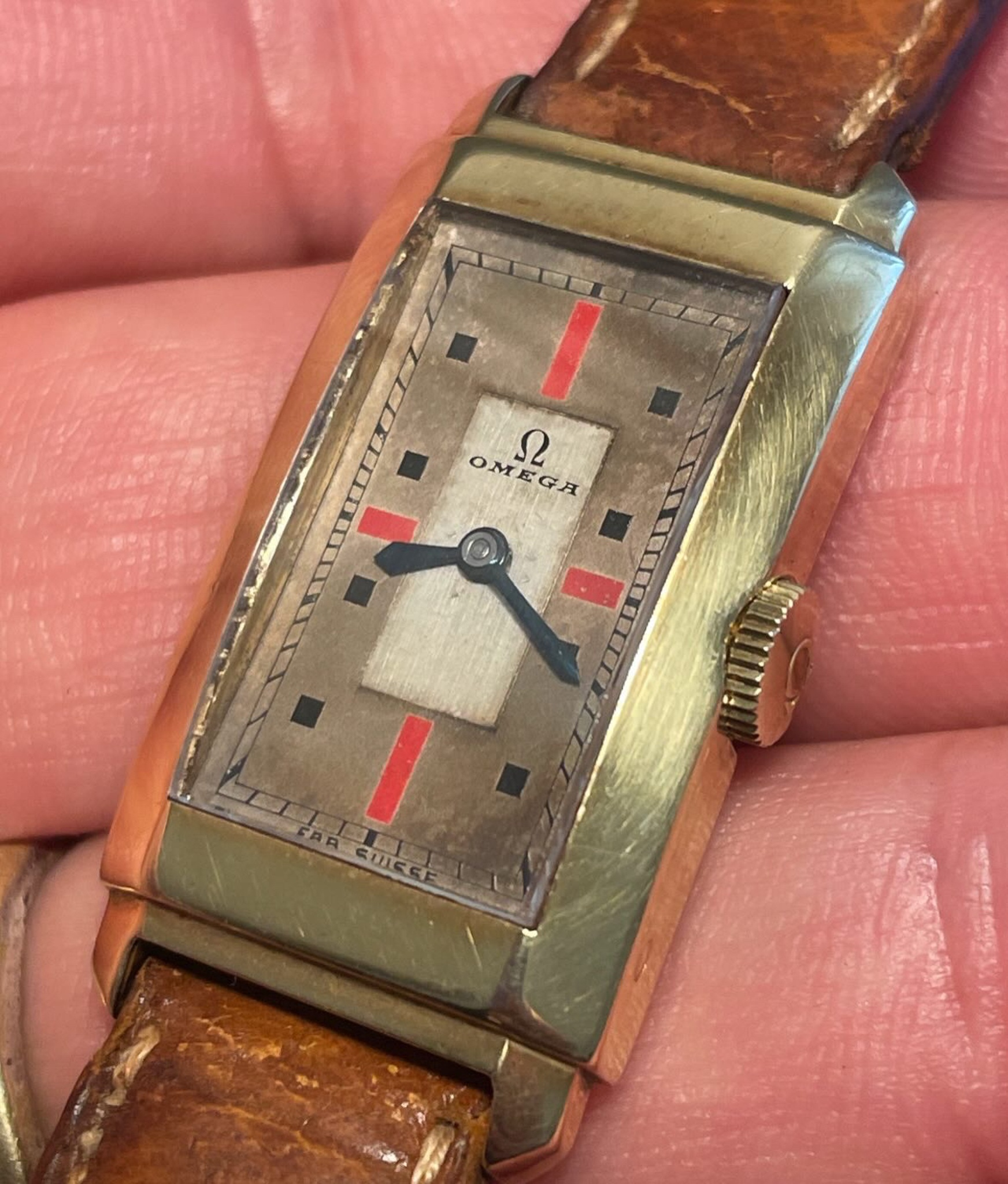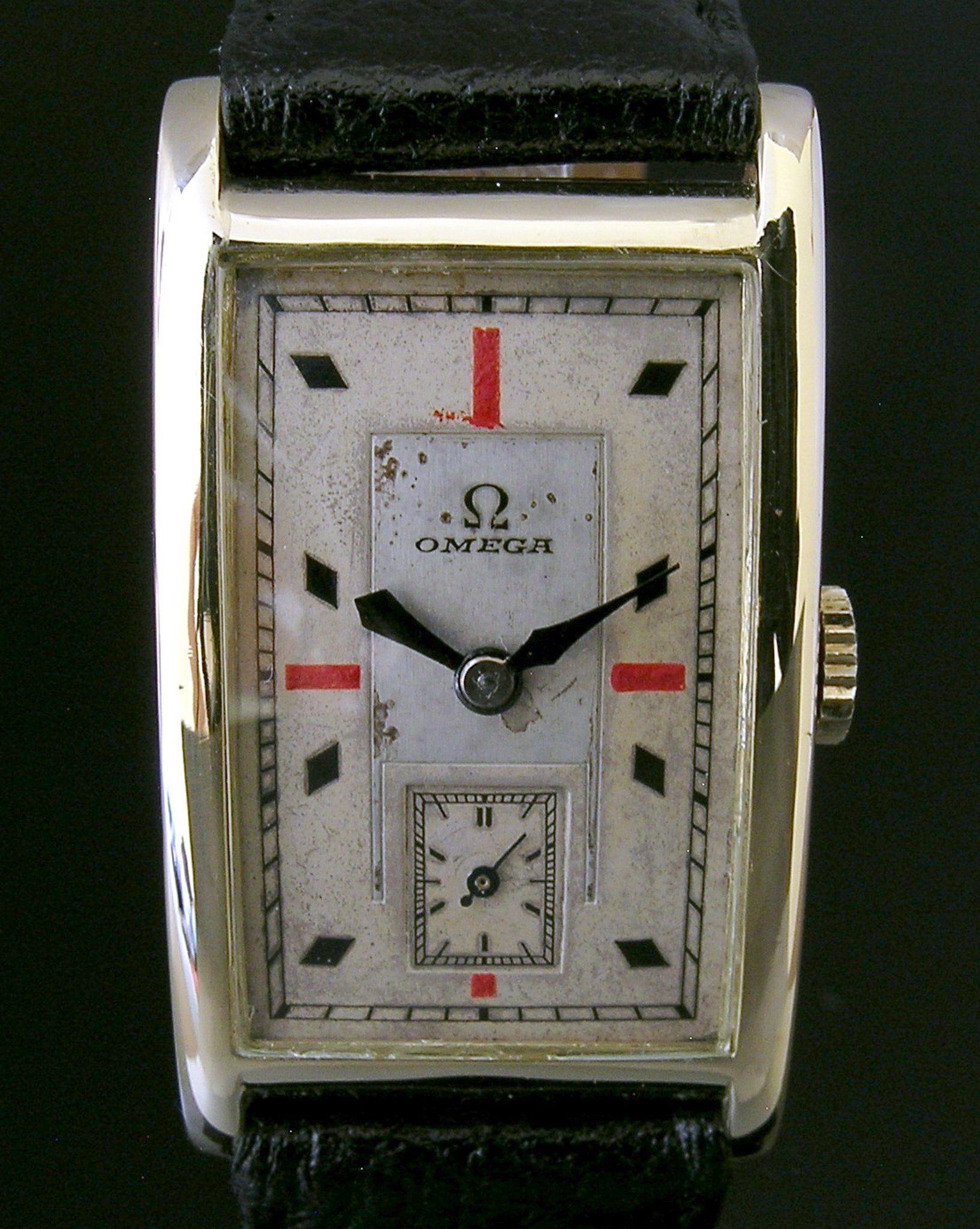 During the 1930s, Omega has made some beautiful wristwatches and pocket watches with striking red painted indexes at 3, 6, 9 & 12.