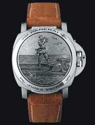 Besides, the Jules Verne Sealand, the JV strap comes standard with the limited edition platinum 10-day GMT Radiomir (Ref: PAM000274).