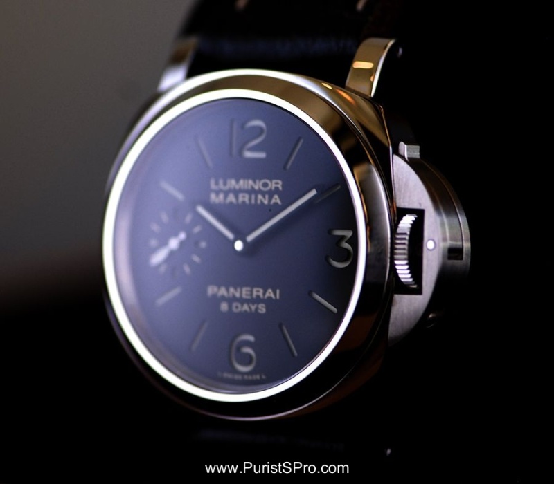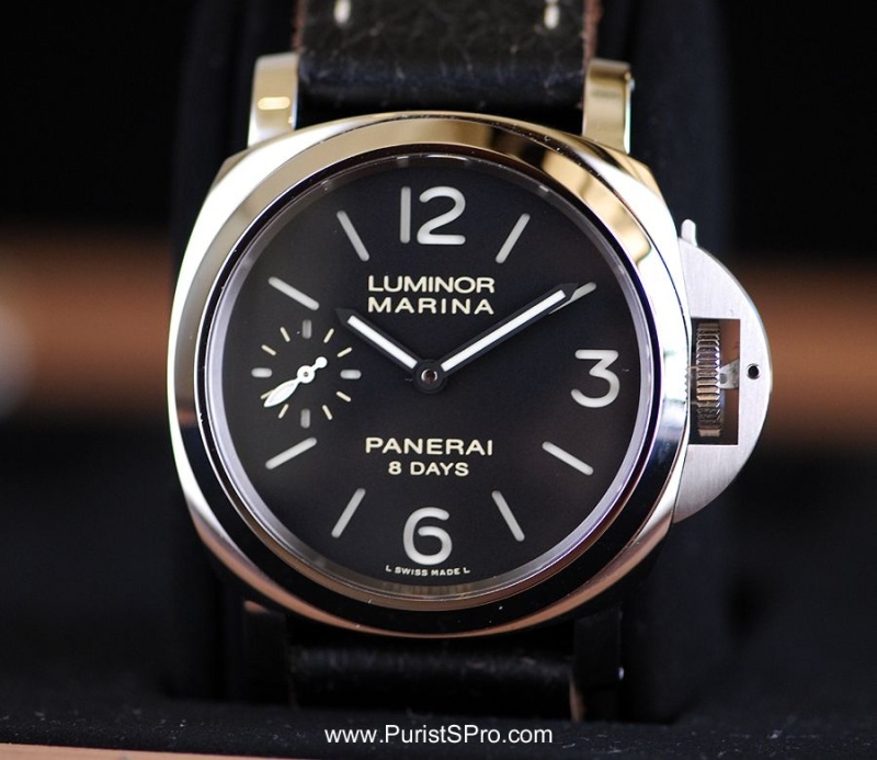 The PAM510 is a 44mm Luminor in stainless steel housing the new in-house P.5000 manual wind 8-day movement. It's basically the same thing as the basic PAM111 with the only differences being the movement & "8 Days" printing on the dial. The case is fully polished but the crown guard is brushed as well as the buckle.