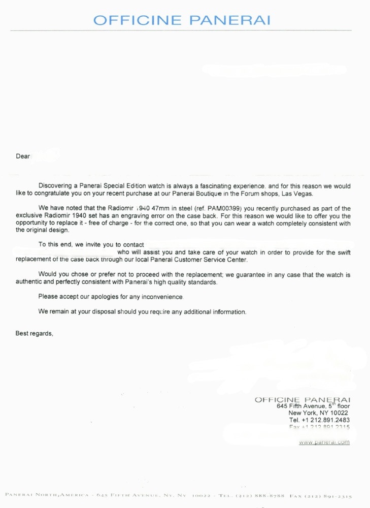 You have a very collectible piece in the future IMO! I didn't know these existed so thanks for sharing with us, and love the letter Panerai sent you too! Cheers, Anthony
