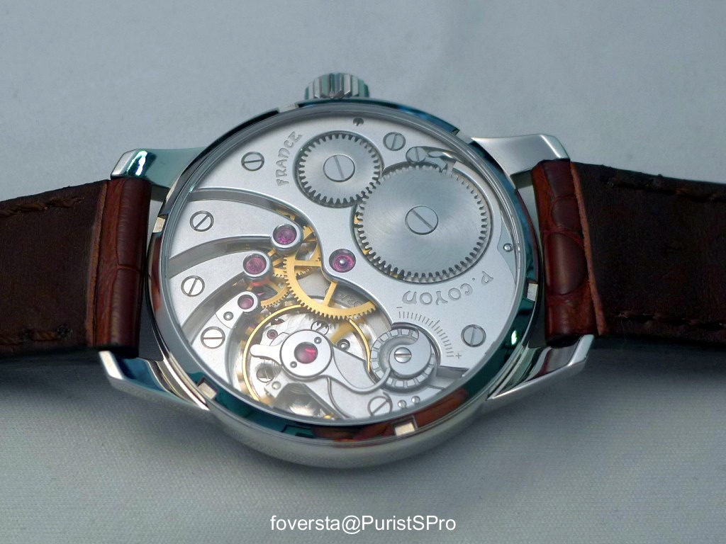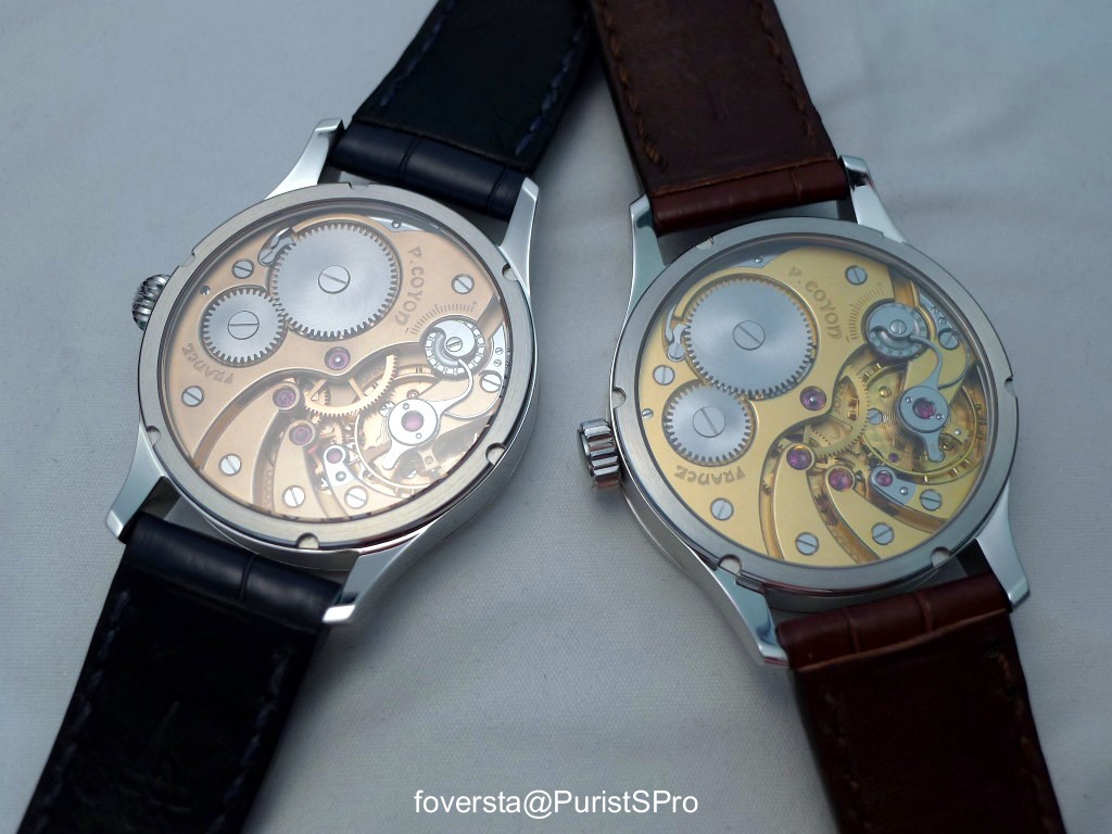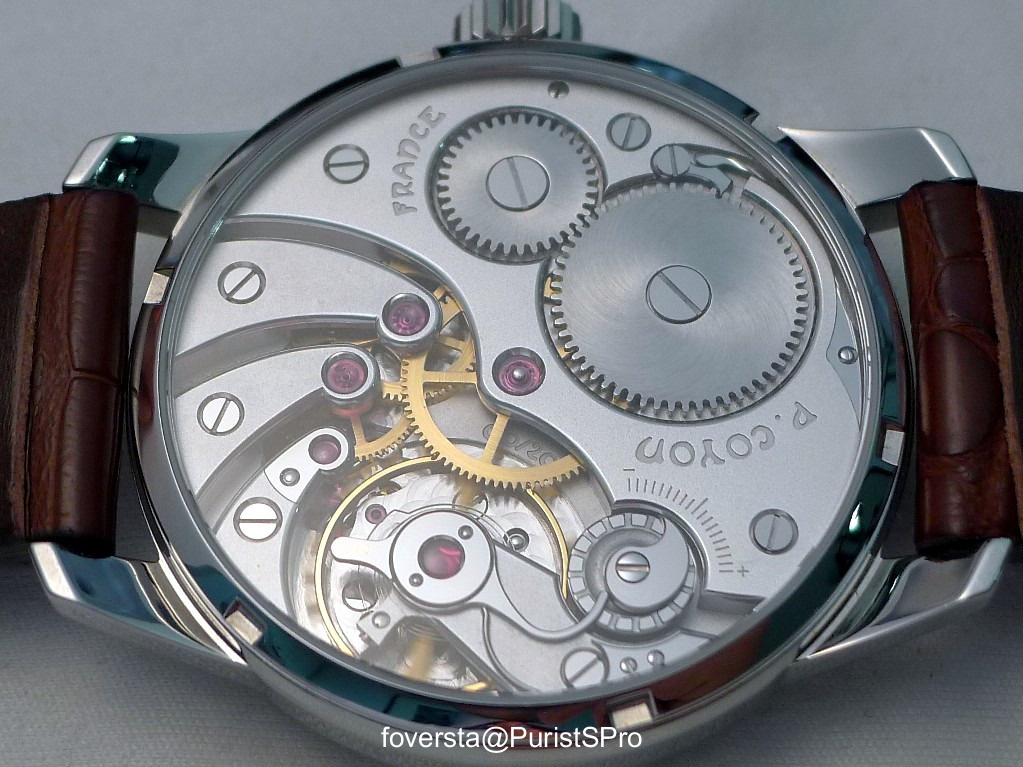 Putting any of these watches on the wrist is pure pleasure if your heart appreciates classic watchmaking and design. The Chronometer from Pascal Coyon is a watch without any true surprise when worn but with a timeless design. In a sense, their true beauty is hidden and when you observe the movement you have the feeling to be back to the roots of watchmaking when the quest for chronometry was the key objective: the finishings didn't have a decorative purpose, they were applied to improve the performance of the movement. With Pascal Coyon's watches, I have the same feeling. Actually, the watches will be delivered with a chronometric bulletin from the Besançon Observatoire. It will be also stated on the movement with the presence of the viper head seal between the balance wheel bridge and the barrel bridge. This seal is of course not visible on the prototypes. Since we are talking here about the Observatoire de Besançon and its bulletins, it will be the full watch (and not only the movement) which will be tested during several days.