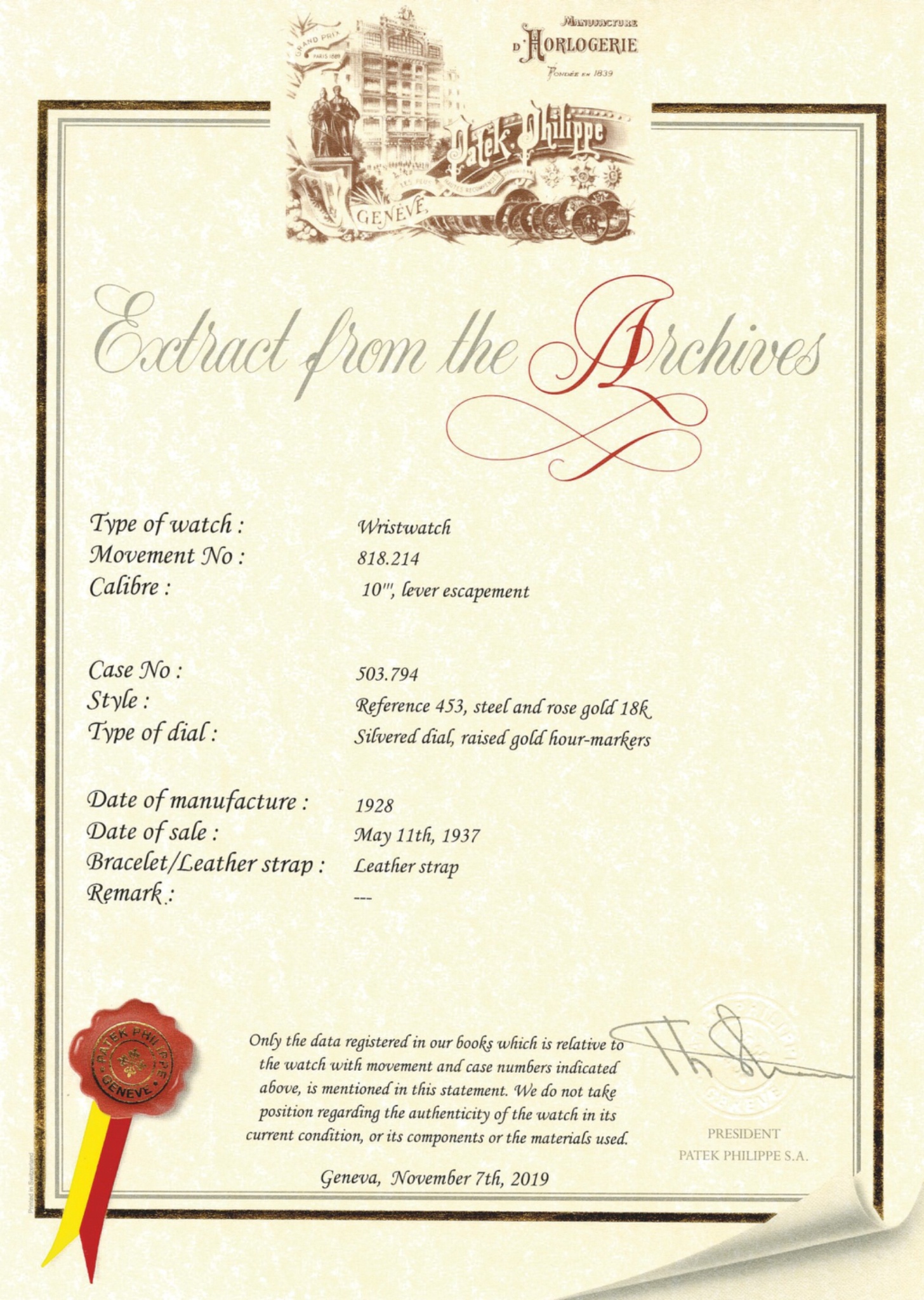 For collectors, the reference 453 appeals to those interested in Patek Philippe's early production and the evolution of watch design. Its compact size and distinctive material combination make it a unique piece, potentially conceived as a woman's watch, yet appreciated today for its historical significance and craftsmanship. The verifiable details from its original sale in 1936 further enhance its provenance.