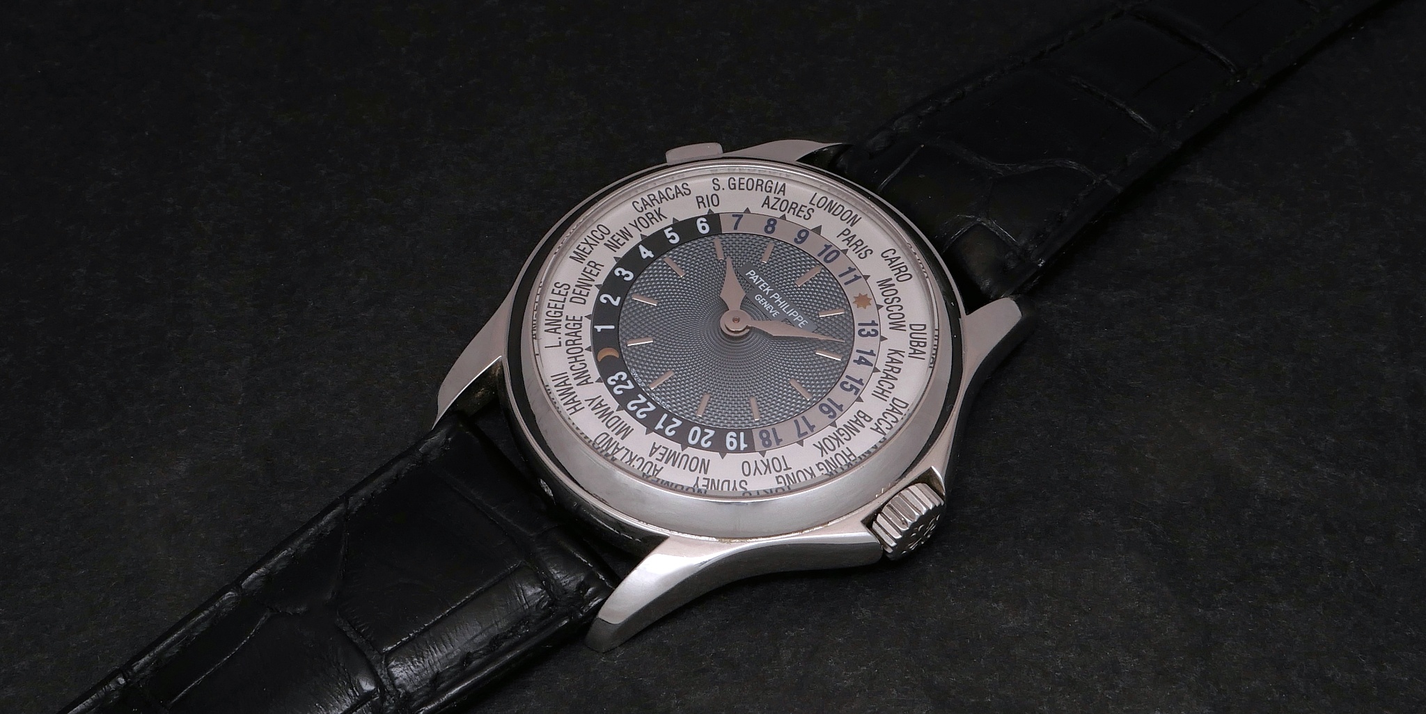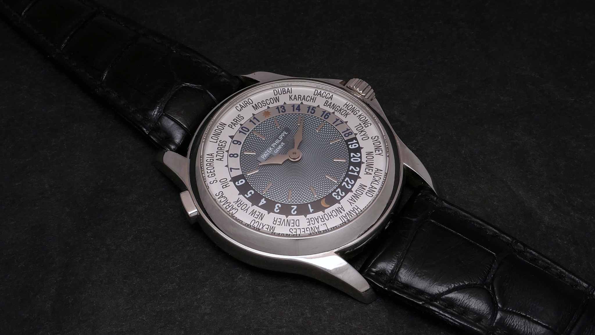 The Patek Philippe Complications reference 5130, introduced in 2006, is a World Time watch that succeeded the popular reference 5110. This model maintained the distinctive World Time complication, allowing for simultaneous display of time in 24 different time zones. Its design evolved with a slightly larger case and updated dial aesthetics, distinguishing it from its predecessor while retaining the core functionality that defines Patek Philippe's travel timepieces. It was produced until 2017.