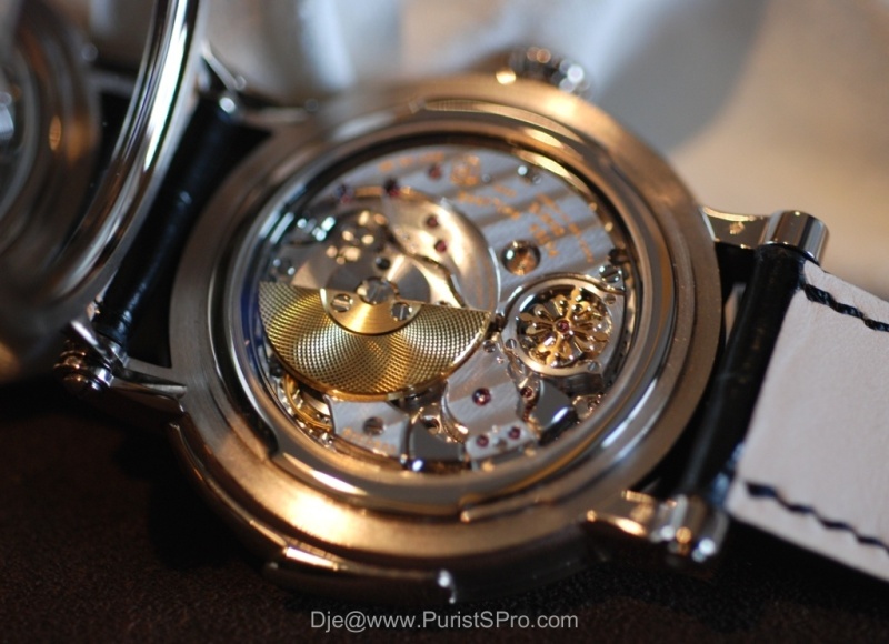 Obviously the tourbillon version of this calibre is more beautiful, but I guess that an automatic calibre is much more practical with a perpetual calendar. And at least the minute repeater automatic calibres get a very appealing guilloche rotor that reminds the nice automatic calibres from the past.