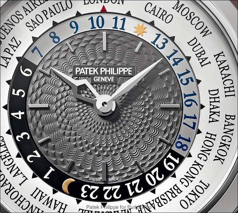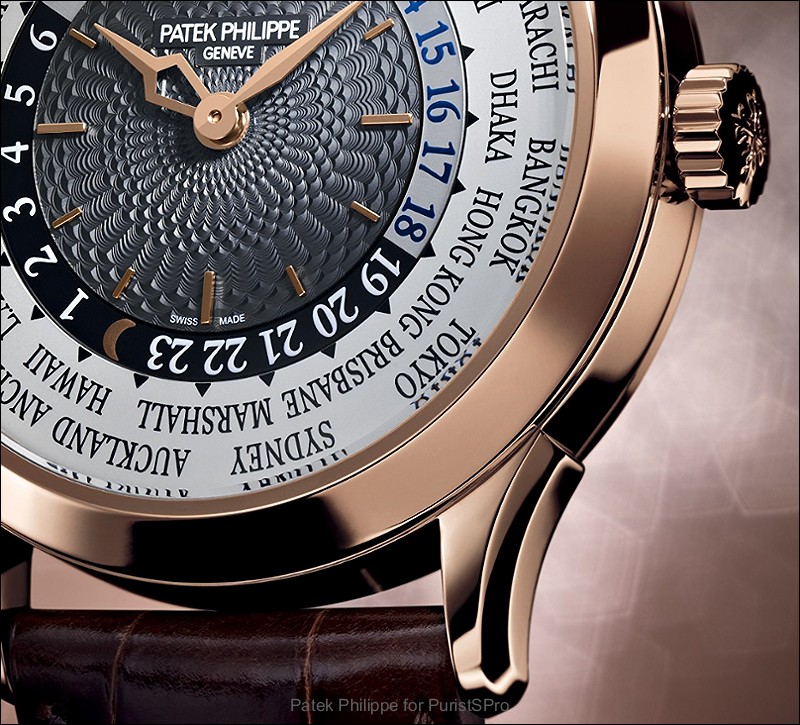 To me this WT is possibly the best version: where the predecessor was a it big feeling on the wrist and the 5110 maybe too small for the liking of many, but not mine, this 5230 is perfect. The guilloche is also, judging by pictures only, maybe the best as it reminds me of the waves of the sea, the oceans that is also a part of the world. The 5110's guilloche reminded me to the longitudes and latitudes of a globe, which was also quite coherent. This 5230 is moving quite close to the 2523 of the 5