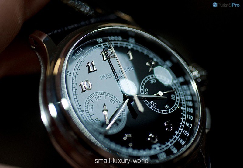 As far as the 5370P is concerned, you notice the dial is very shiny being made of enamel and very precisely polished. This allows the contrast to be more coherent because it needs to be adequate with the light reflection on the black surface.