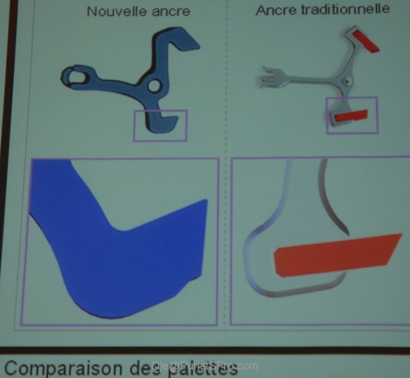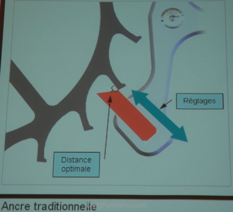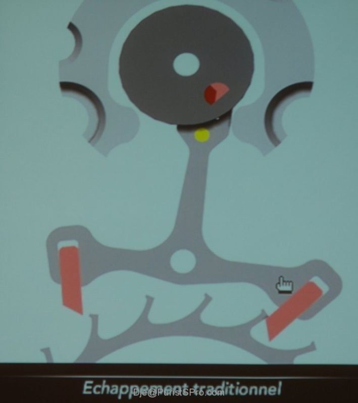 the escapement apparently means a less changing amplitude of the balance wheel.