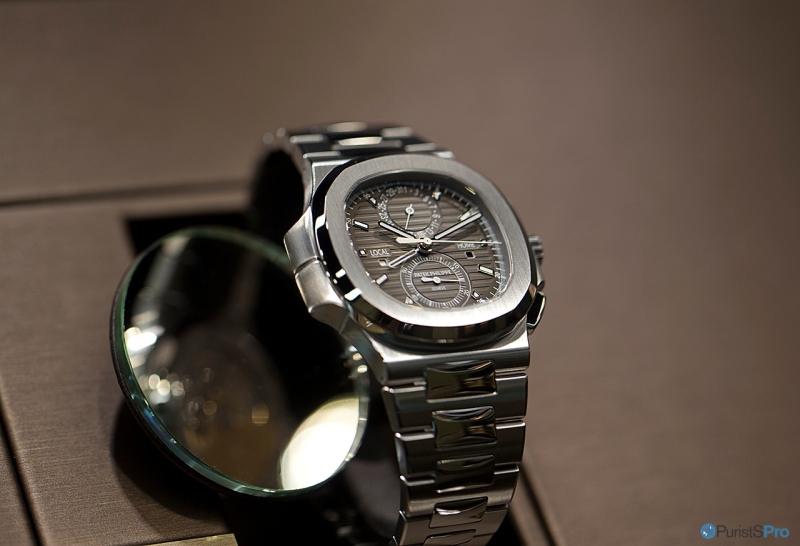 The new Nautilus Travel Time Chronograph Ref. 5990/1A combines two highly popular complications and features additional functions for enhanced everyday convenience. What looks like a simple addition of a new “smaller” complication, was in fact quite challenging and not only for the watchmakers. The right side accommodates the chronograph pushers and protection of the crown while the left side features the two time zone correctors with which the local time hour hand is bidirectional increment abl
