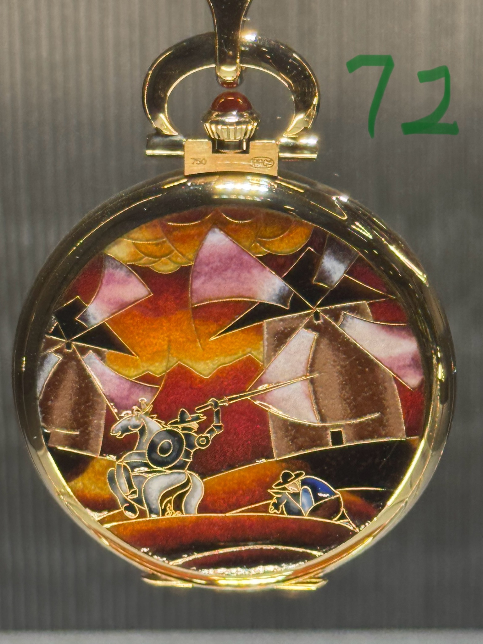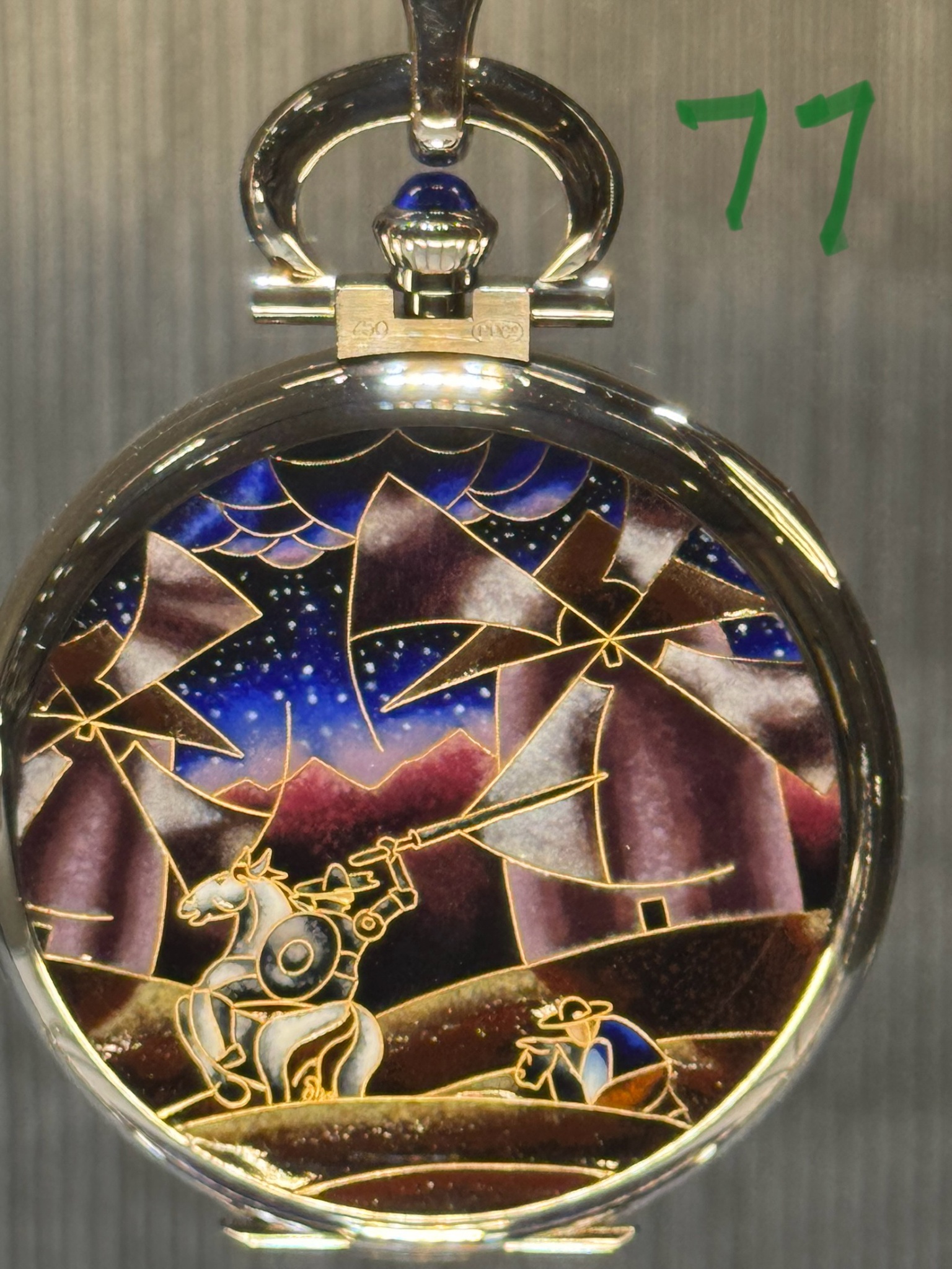 The Jules Verne dials are amazing. I think that the screws on the bezels go perfectly for this series as you have the original nautilus motif as well as my favorite from Verne - from Earth to the moon. What size diameter are these? And the Don Quixote ones are exquisite. The windmill details that suggest movement are stunning. Thank you! As our resident enamel expert - how do you get pricing on these? Do they only produce these or take a special order? Say for example wanting a Don Quixote like