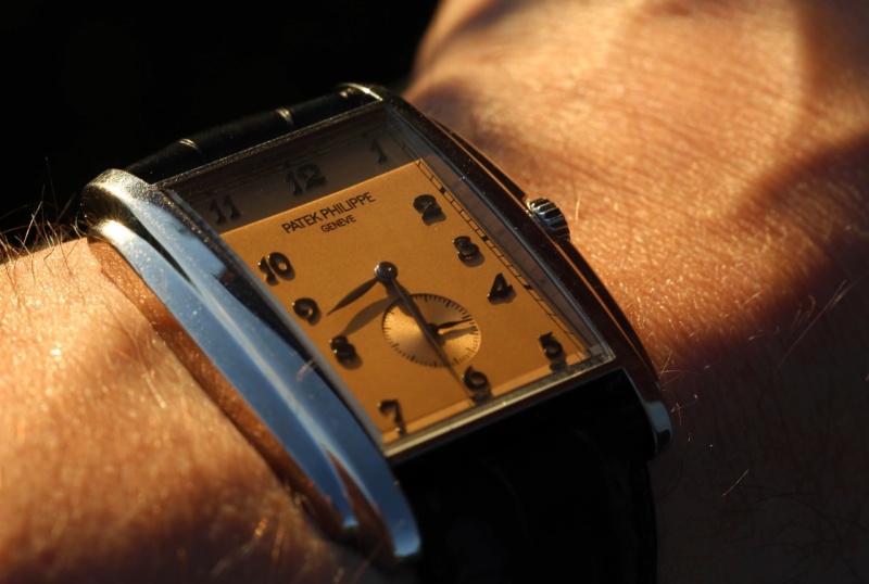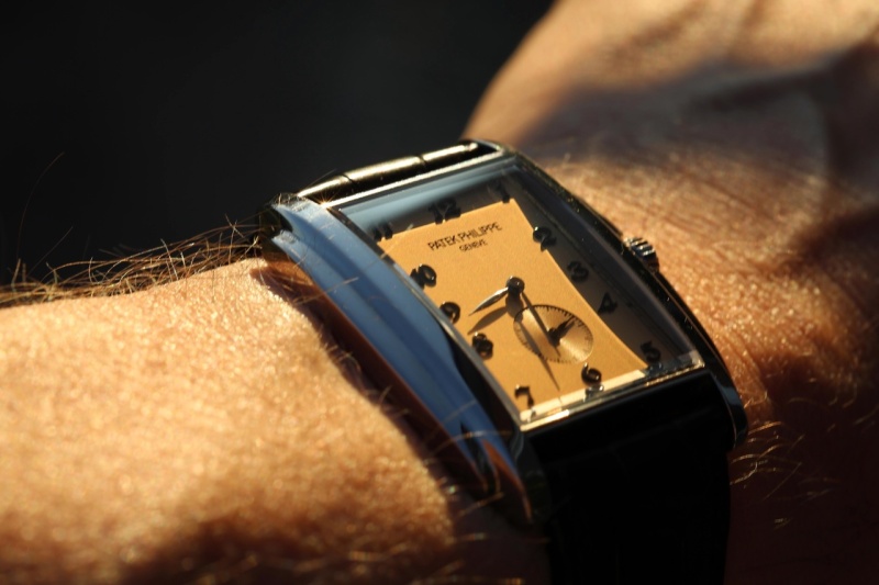 Instead, I have looked for something more simple, less "prestigious" maybe, but something that rang the bell for me. And in the 5124G I found what I am looking for. White metal.....which is a big plus for me. Exquisite numerals....perfect for this watch. Case depth and size is almost perfect for my wrist....it sits on like a glove. Simple dial layout....again exactly what I am looking for. Now what about the "salmon" colour of the dial? Well, to be honest, this just is NOT a salmon dial. It does not have the pinkishness of a salmon at all. It has this golden hue to it which is superb in my view. When it catches the sun, it is breathtaking. Another feature of Patek dials is this ability on the dial character. This one does not disappoint.
