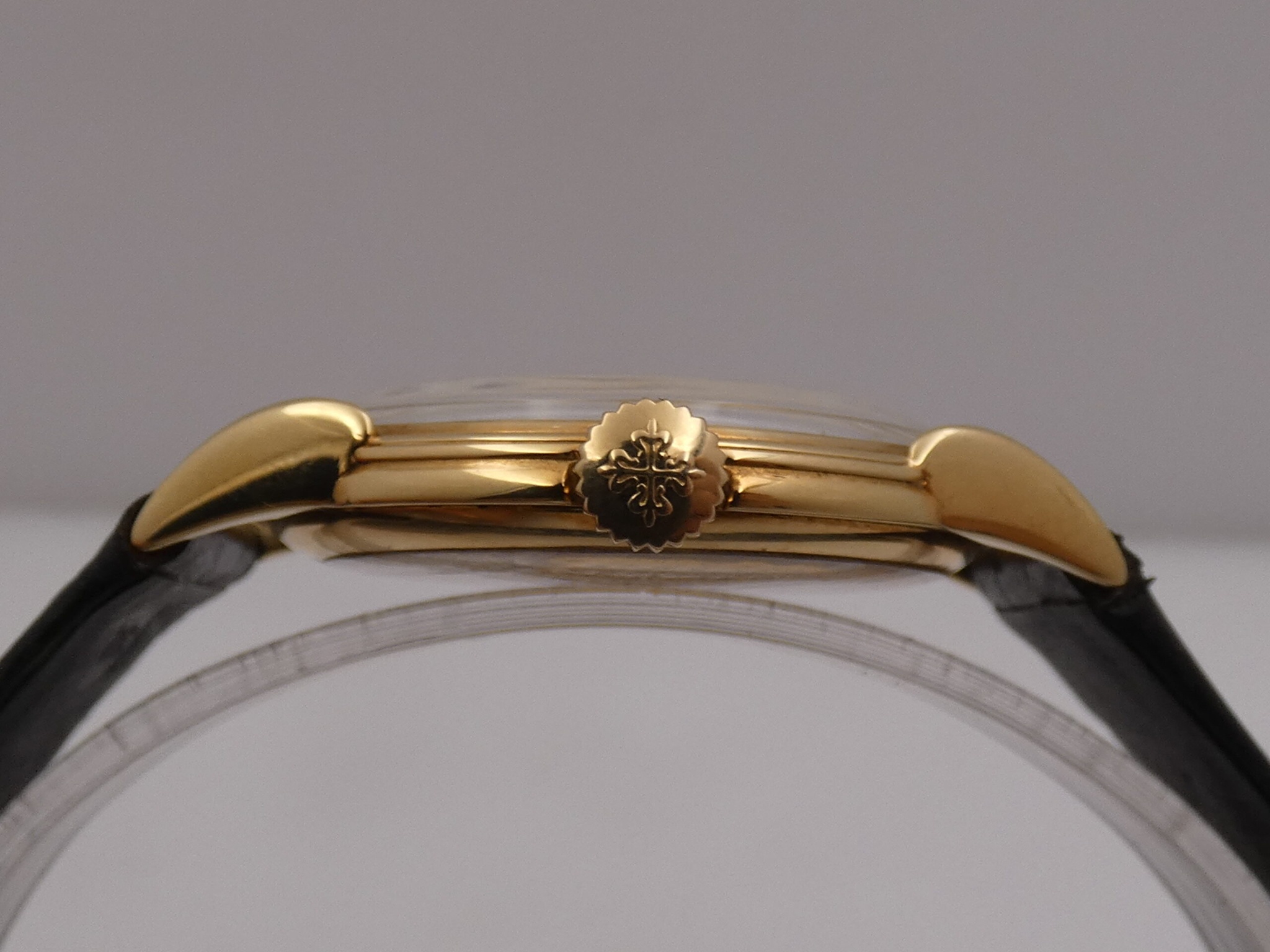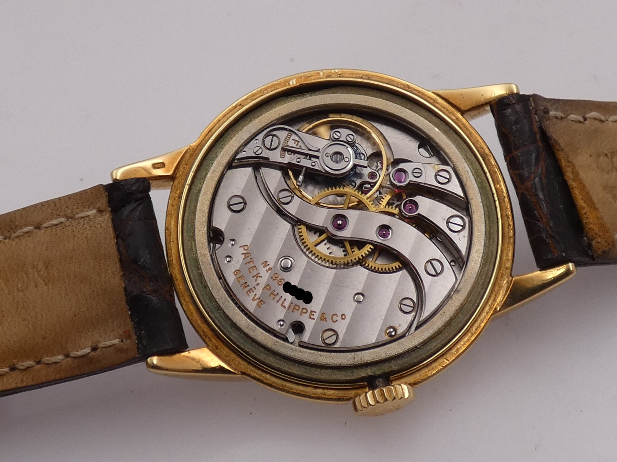 This reference features a yellow gold case, housing a manual-winding movement. The case diameter measures 37mm, a substantial size for its era, contributing to its legibility and presence on the wrist. The watch is fitted with a Hesalite crystal, typical for watches of this period, protecting a dial that often features applied hour markers and a well-organized display of the perpetual calendar functions.